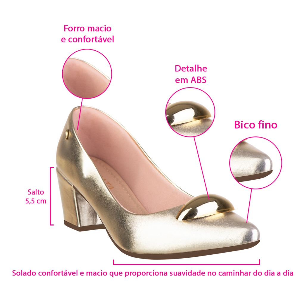 Scarpin Feminino Sapato Metalizado Salto Baixo Bloco Detalhe Metal Confortavel Moda Promoção