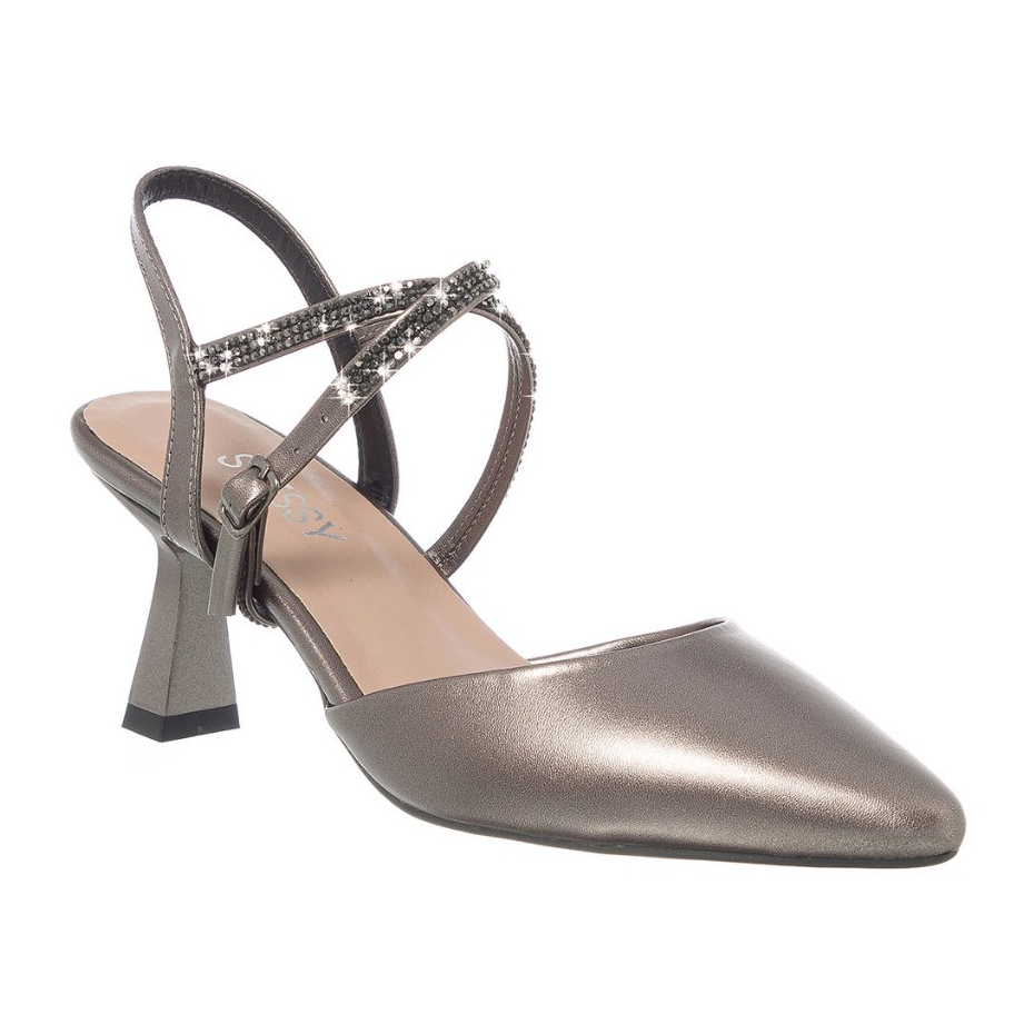 Scarpin Feminino Sapato Salto Taça Geométrico Médio Brilho Cristal Bico Fino Elegante Confortável