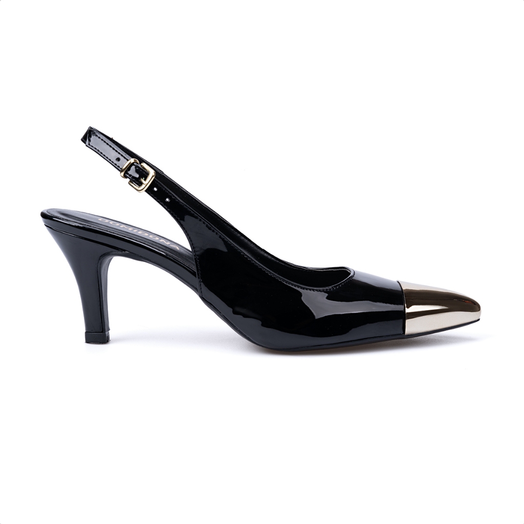 Scarpin Feminino Slingback Domidona Bico Fino Metal Salto Fino Elegante