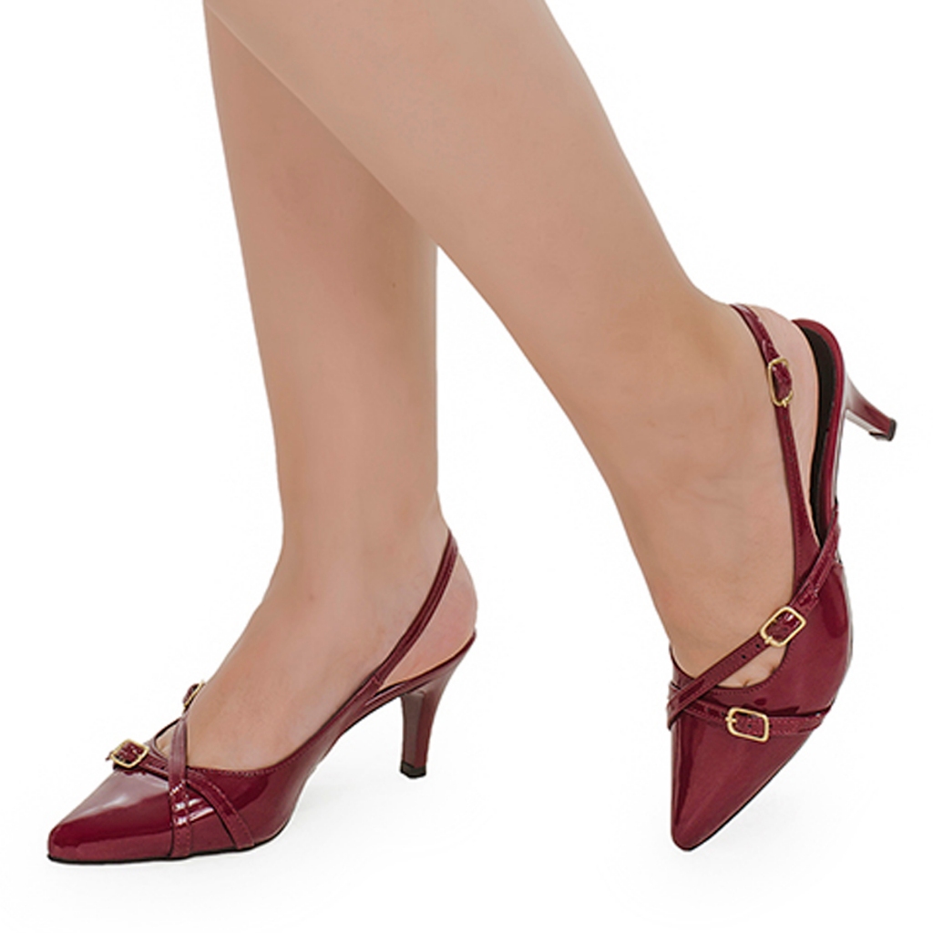 Scarpin Feminino Slingback Salto Fino Médio Com Tiras E Fivelas Bico Fino Elegante 10000