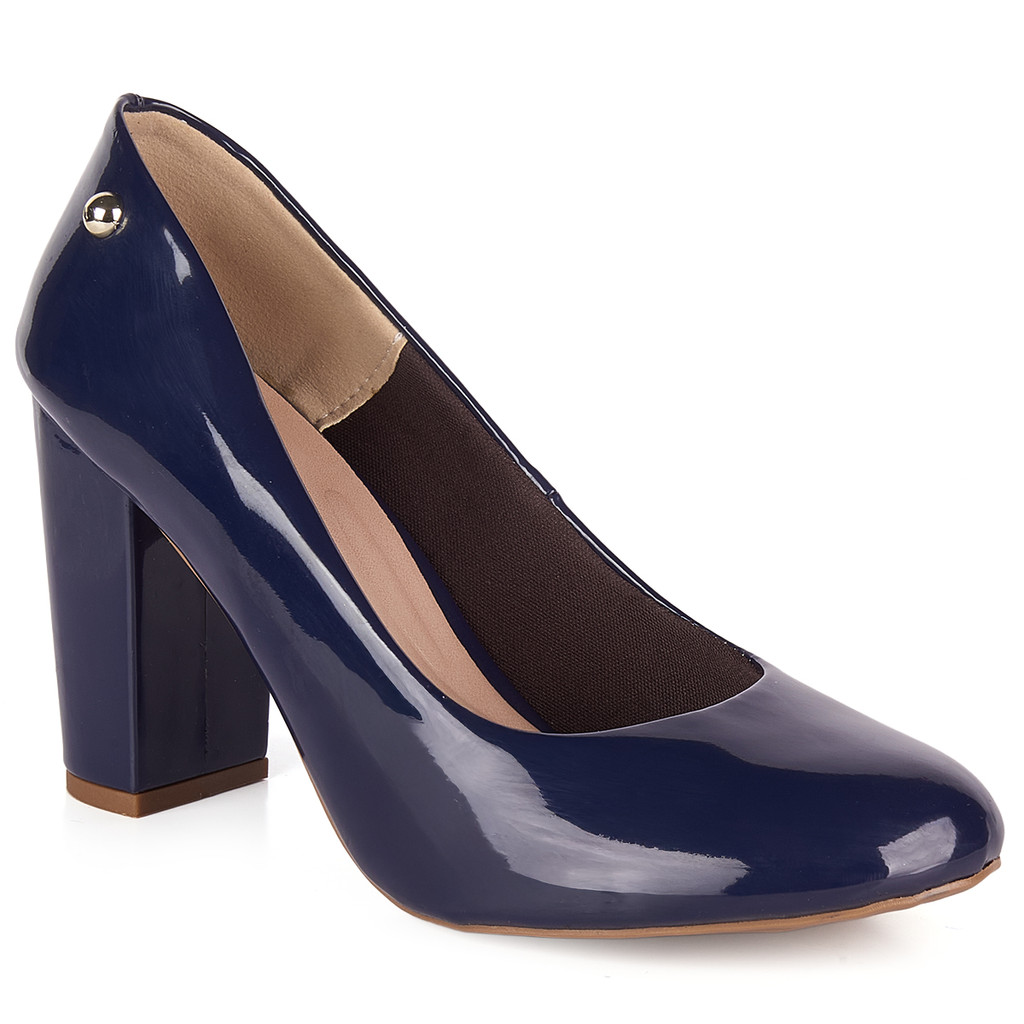 Scarpin Feminino Verniz Preto Bico Redondo Salto 8cm bloco