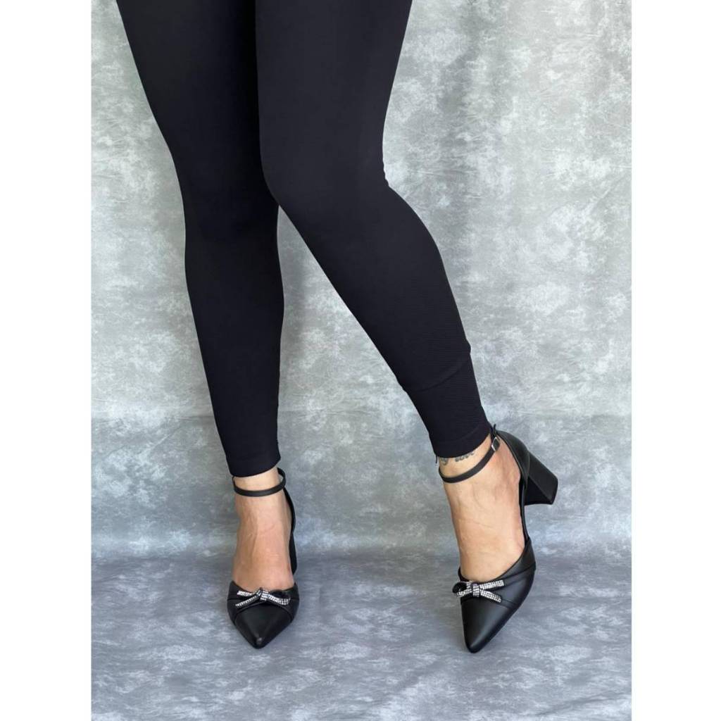 Scarpin Salto Bloco Laço Brilho Feminino Milli Elegante Festa