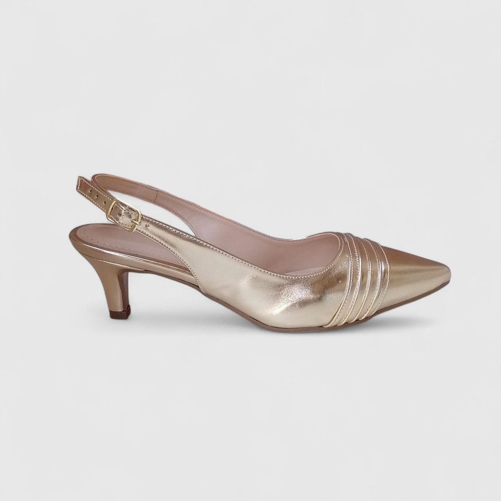 Scarpin Slingback Dourado com Sola de Borracha e Salto 5cm – Elegância, e Conforto Premium