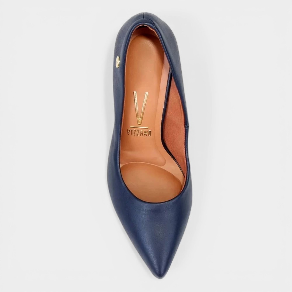 Scarpin Vizzano Bico Fino Salto Bloco Alto - Marinho