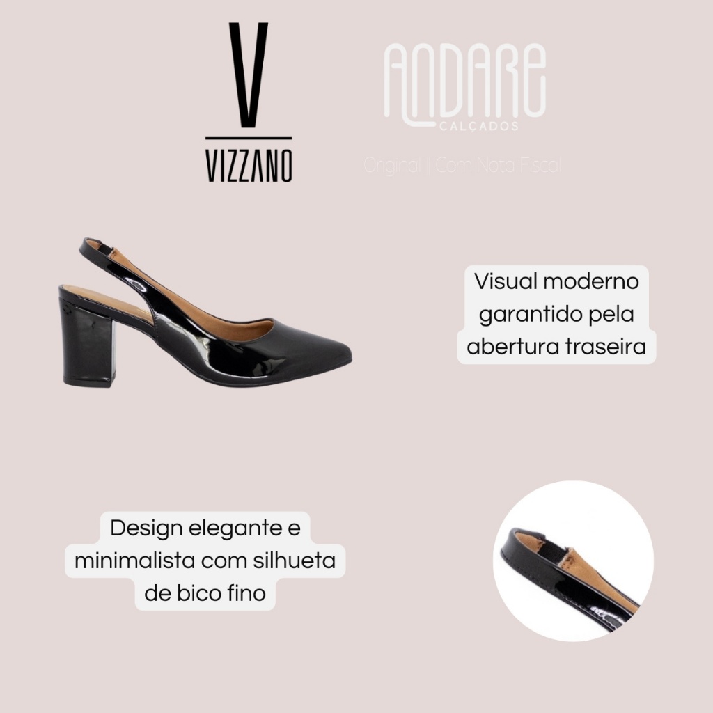 Scarpin Vizzano Slingback Casual Salto Grosso Feminino Macio Original
