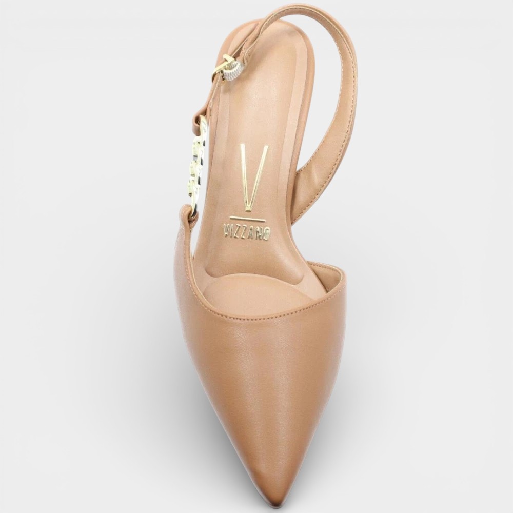 Scarpin Vizzano Slingback Detalhe Bico Fino Salto Baixo - Caramelo