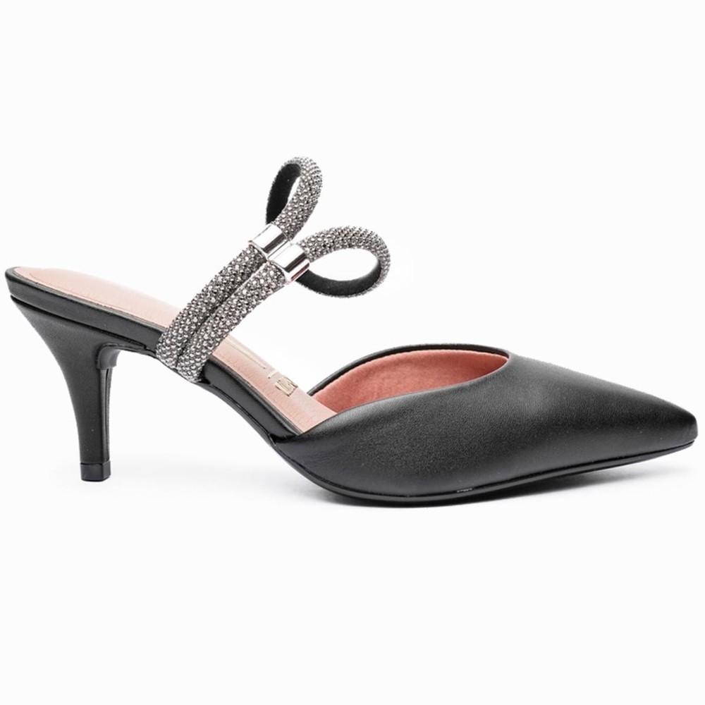 Scarpin Vizzano Traseiro Aberto Tira Strass Salto Médio