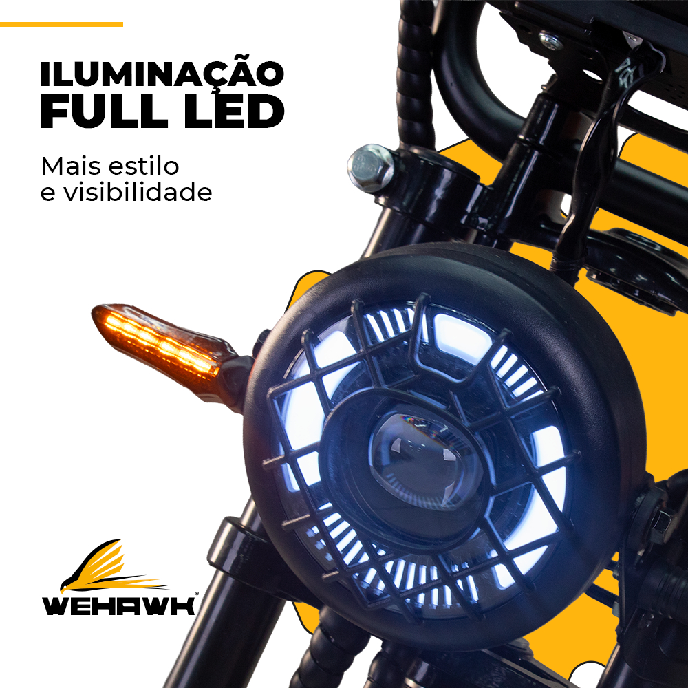 Produto enviado montado pronto para uso. Enviamos para todo o Brasil. ⚙️ ESPECIFICAÇÕES E MOTORIZAÇÃO Marca: WeHawk Modelo: Scooter WX-11 Motor: Brushless 1000W Velocidade Máxima: 0 a 32Km/h Controle de velocidade: Seletor com 3 níveis Controladora: 60V Pneus: Aro 10" (Dianteiro e Traseiro) Pressão dos pneus recomendada: 18 a 22 Libras 📏 DIMENSÕES E CAPACIDADES Dimensões totais: 167 x 70 x 120 cm Distância entre eixos: 128cm Carga máxima suportada: 180Kg Lotação: 2 Lugares Peso do produto: 80Kg (Líquido) / 85Kg (Bruto) 🔋 BATERIA E AUTONOMIA Tipo: Bateria de Lítio (Removível) Especificação: 60V 20Ah Autonomia estimada: Até 45Km* Carregador: Bivolt (127V / 220V) Tempo de recarga total: De 6 a 8 Horas 🛡️ SEGURANÇA, CONFORTO E DESIGN Freios: A disco nas duas rodas (Dianteira e Traseira) Suspensão: Amortecedores dianteiros e traseiros Iluminação: Full LED (Farol alto, baixo e setas) Painel: Digital com velocímetro, nível de bateria, odômetro e indicadores Segurança: Alarme com bloqueio, trava e acionamento remoto Praticidade: Possui função Ré Acessórios inclusos: Chave reserva e controle de alarme 🛡️Garantia Cobertura de 6 meses Cobertura extendida de 12 meses para bateria e motor ❗ Não cobre danos por mau uso, quedas ou modificações Observação: - Recomendamos o uso de capacete e itens de segurança. - Autonomia pode variar de acordo com trajeto e peso carregado. - Não deixe o produto por longos períodos descarregado. - Qualquer dano estético deve ser comunicado no ato do recebimento.