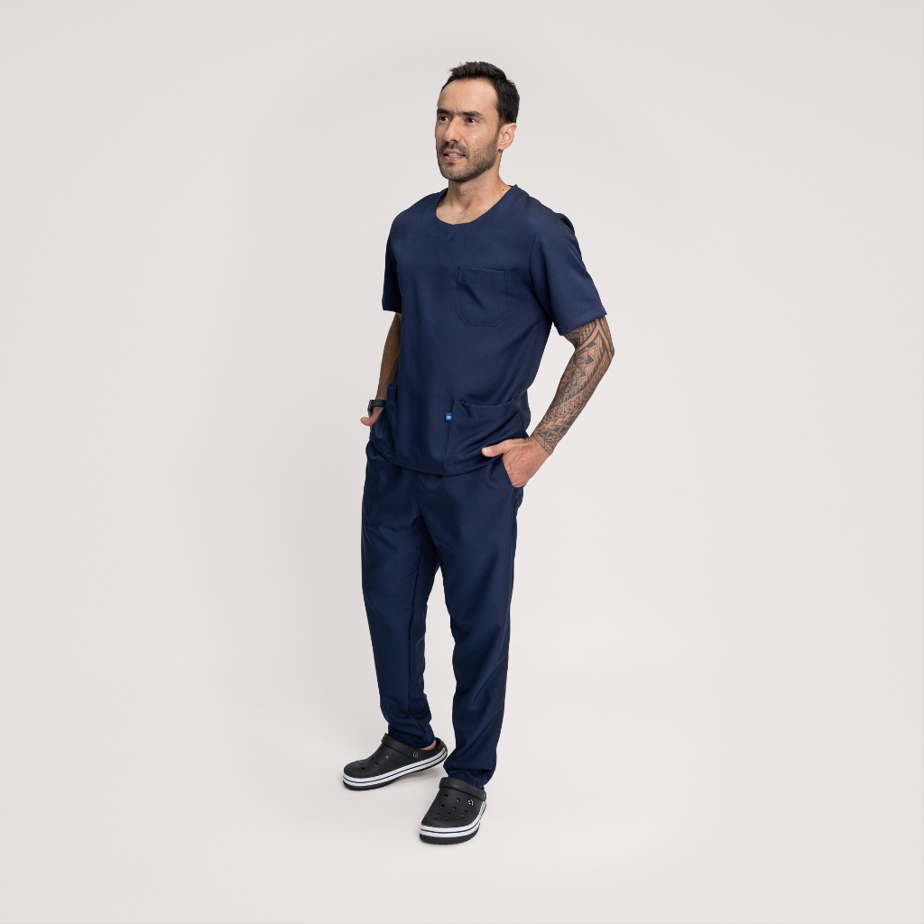 Scrub Conjunto Pijama Cirúrgico Gabardine Conjunto Masculino Gola redonda