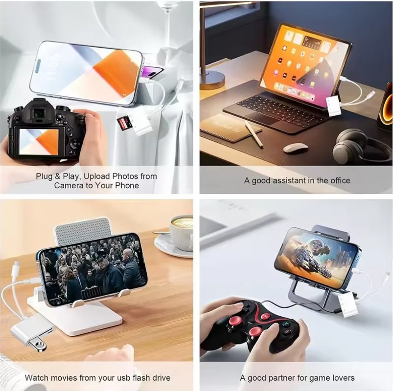 Leitor de cartão de Interface de iluminação USB-C + leitor de cartão de Interface de iluminação: Um acessório de armazenamento para Canon, Nikon, Sony, Samsung, Kodak e outros dispositivos de fotografia digital. Compatível com iPhone, iPad Pro/Ar/Mini, MacBook, e Mac. Suporte SD/TF e USB: O leitor de cartão de memória CULGC suporta cartões SD e TF, incluindo cartões Seguros Digital (padrão SD/SDHC) e Micro SD (TF). Ele também suporta drives flash USB, fones de ouvido USB, guitarras elétricas, teclados MIDI, e muito mais. Transferência de dados de alta velocidade: Suporta velocidades de transferência de dados até 5 Gbps. Leia e escreva de cartões de memória e unidade flash USB simultaneamente. Transfira fotos e vídeos rapidamente para o seu dispositivo sem problemas de desconexão constante e re-ligação de fotos e vídeos rapidamente para o seu dispositivo sem problemas de desconexão constante e re-plugging. Transferência de duas vias: A transferência de duas vias é suportada em dispositivos iOS 13–16. Importe dados de cartões SD/TF e drives USB para o seu iPhone/iPad, ou exporte arquivos de seu iPhone/iPad para cartões SD/TF e drives USB. Tipos de arquivo suportados incluem filmes, músicas, Palavras, PowerPoint, Excel, PDF, e muito mais. Compatibilidade ampla: Compatível com iOS, Windows, MacOS, Linux, Android e outros sistemas. Desfrute de uma verdadeira experiência de plug-and-play. Não é necessário adaptador de energia adicional. ⚠⚠⚠Nota⚠⚠⚠ Devido a razões de lote de produção, o produto real pode ser ligeiramente diferente da imagem (impressão/cor), o que não afeta o uso real. Tudo está sujeito ao produto real. Obrigado por sua cooperação Devido a diferentes lotes de produção, o produto real prevalecerá. Leves diferenças não afetarão o uso.