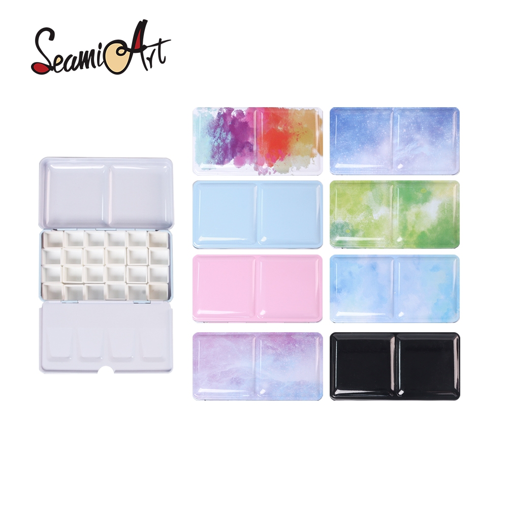 SeamiArt Portátil Clássico Aquarela Dobrável Caixa De Pintura De Metal Com 24 Peças De Meia Panela Magnética
