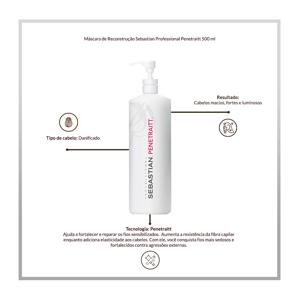 Tratamento Semanal Para Cabelos Danificados. Hidrata Profundamente Enquanto Reconstrói Os Fios. a Masque Penetraitt da Sebastian Fortalece a Fibra Capilar Adicionando Mais Resistência, Elasticidade e Maciez Aos Cabelos Que Ficam Muito Suaves Ao Toque! * OBSERVAÇÕES: Imagem Meramente Ilustrativa * ITENS INCLUSOS: 1 Sebastian Professional Penetraitt Máscara de Reconstrução 500ml