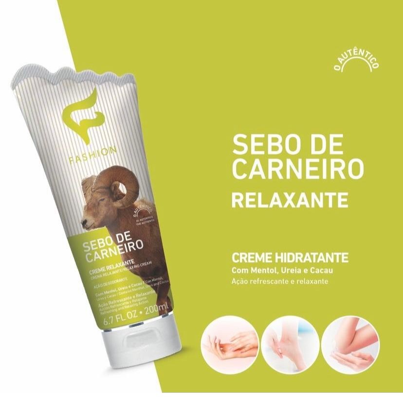 O valor anunciado é referente UM sebo RELAXANTE! Hidratação com absorção rápida e ação refrescante, o Creme Sebo de Carneiro Relaxante proporciona sensação de bem estar, relaxamento e conforto, além de deixar a pele macia e muito hidratada. DETALHES • Creme Relaxante • Ação desodorante • Com Mentol, Ureia e Cacau • Ação Refrescante e Relaxante Aqui na DOMAN você encontra os melhores produtos para o seu cuidado pessoal ;)