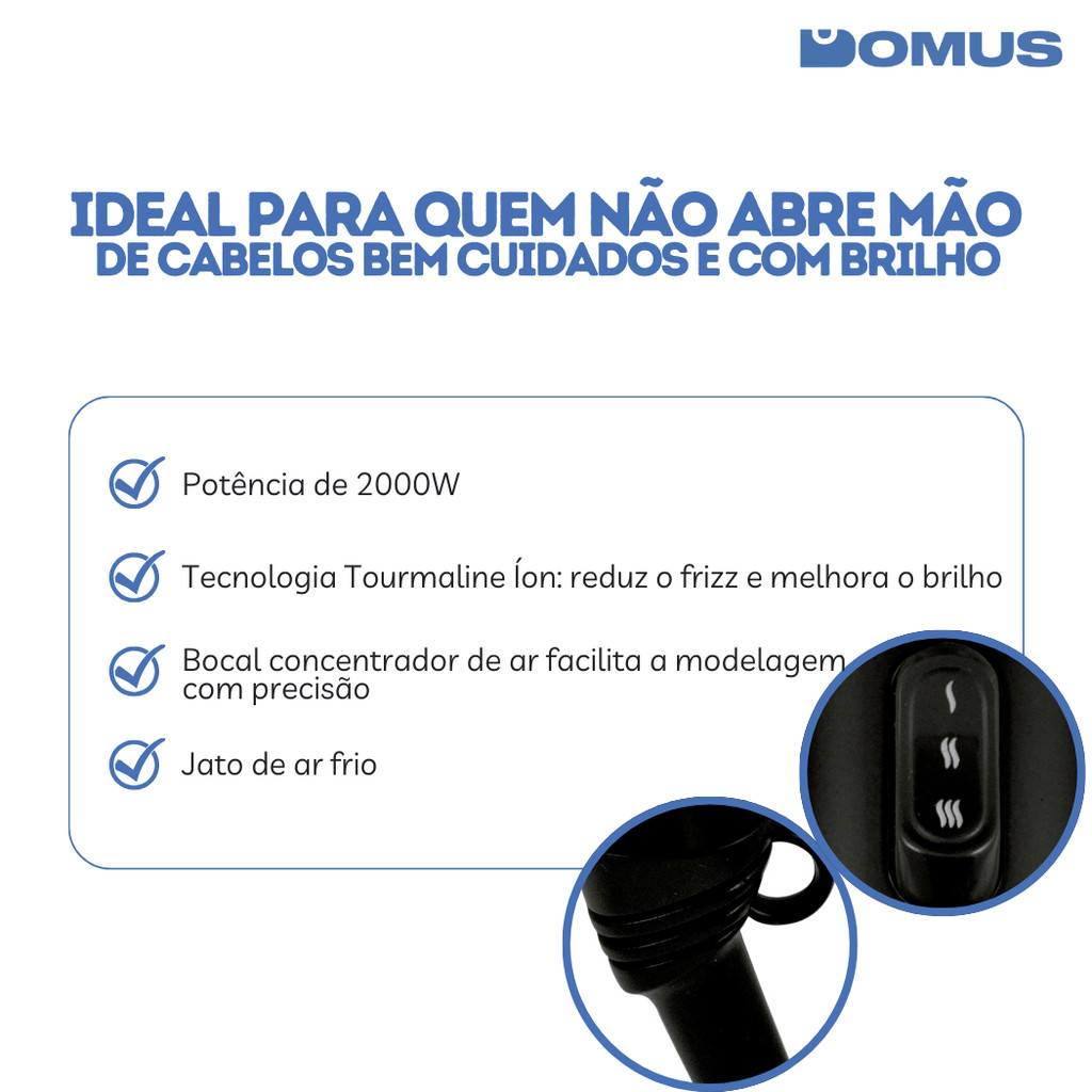 ***PRODUTO A PRONTO ENTREGA COM ENVIO IMEDIATO*** PRODUTO ORIGINAL COM NOTA FISCAL Secador de Cabelo Britânia 2000W SP3100 Preto – Alta potência, secagem rápida e estilo garantido. Com 2000W de potência, o Secador Britânia SP3100 entrega uma secagem rápida e eficiente, aliando desempenho e cuidado com os fios. Conta com 2 velocidades e 3 temperaturas, ideais para todos os tipos de cabelo, além de jato de ar frio para finalizar os penteados com mais fixação e brilho. Possui bocal concentrador que facilita a modelagem e direciona o ar com precisão. O anel para pendurar oferece mais praticidade no armazenamento. Especificações técnicas: Marca: Britânia Modelo: SP3100 Potência: 2000W Voltagem: 127V ou 220V (conforme modelo) Níveis de temperatura: 3 Velocidades: 2 Acessórios: Bocal concentrador Comprimento do cordão: 1,9m Consumo: 2,0 kWh Cor: Preto Altura: 28,8 cm Largura: 23,1 cm Comprimento: 9,8 cm Peso: 0,8 kg