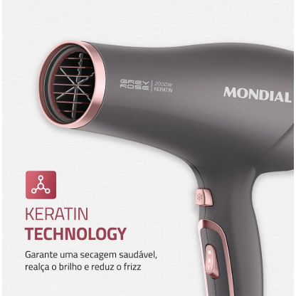 Secador de Cabelo Mondial SCN-11 2000W - 3 Temperaturas + 2 Velocidade, Grafite/Rose