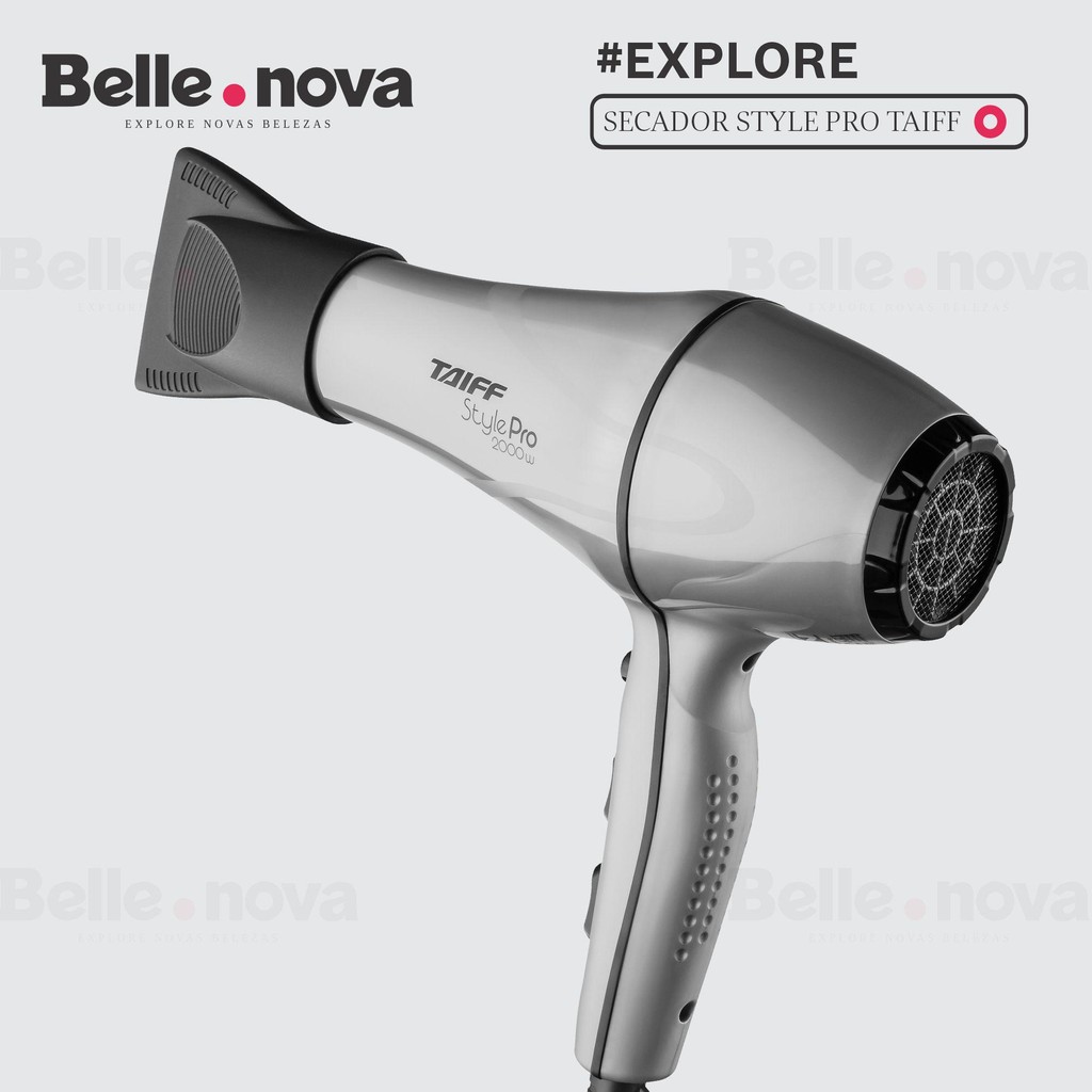 Secador de Cabelo Taiff Style Profissional Original 2000WDescriçãoO Secador de Cabelo Taiff Style Pro é a escolha ideal para profissionais que buscam qualidade e eficiência. Com um cabo de 3 metros proporciona liberdade e agilidade durante os procedimentos. Seu motor AC Profissional é silencioso e durável, garantindo uma experiência agradável. Com uma potência de 2000W, permite secar e modelar os cabelos rapidamente. A chave seletora oferece 5 diferentes temperaturas, combinando velocidades e jato de ar frio para resultados personalizados. Principais CaracterísticasModelo: Style Cor: Prata Motor: AC Profissional Nível de Temperatura: 3 Níveis Velocidade: 2 Peso do Produto: 787g Potência Máxima: 2.000W Comprimento do Cabo: 3 Metros Garantia do Fabricante: 6 Meses Cabo Giratório: Não Jato de Ar Frio: Sim Voltagem: 110V ou 220V (não é bivolt) Consumo: 2 KWH Com Alça para Pendurar AtributosMarca: Taiff Modelo: Style Taiff 2000W Detalhes do ProdutoO Secador de Cabelo Taiff Style Profissional Original 2000W é sinônimo de durabilidade e desempenho excepcional. Com sua alta potência, ele garante resultados incríveis nos cabelos, tornando-se seu parceiro de confiança para todas as ocasiões. Seja no salão ou em casa, conte com o Secador Taiff Style para cuidar da saúde e beleza dos seus cabelos. Secador Taiff Style 2000W e experimente a diferença que um produto de qualidade pode fazer na sua rotina de cuidados com os cabelos!Garanta já o seu Secador Taiff Style 2000W e tenha cabelos deslumbrantes todos os dias!