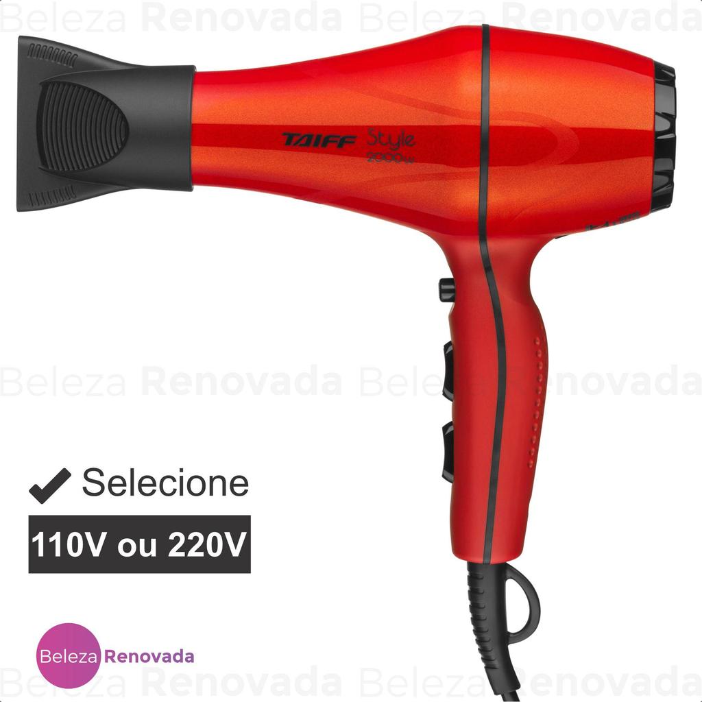 Secador de Cabelo Taiff Style Profissional Original 2000WDescriçãoO Secador de Cabelo Taiff Style Pro é a escolha ideal para profissionais que buscam qualidade e eficiência. Com um cabo de1,8 proporciona liberdade e agilidade durante os procedimentos. Seu motor AC Profissional é silencioso e durável, garantindo uma experiência agradável. Com uma potência de 2000W, permite secar e modelar os cabelos rapidamente. A chave seletora oferece 5 diferentes temperaturas, combinando velocidades e jato de ar frio para resultados personalizados. Principais CaracterísticasModelo: Style Cor: vermelho Motor: AC Profissional Nível de Temperatura: 3 Níveis Velocidade: 2 Peso do Produto: 787g Potência Máxima: 2.000W Comprimento do Cabo: 1,8 Garantia do Fabricante: 6 Meses Cabo Giratório: Não Jato de Ar Frio: Sim Voltagem: 110V ou 220V (não é bivolt) Consumo: 2 KWH Com Alça para Pendurar AtributosMarca: Taiff Modelo: Style Taiff 2000W Detalhes do ProdutoO Secador de Cabelo Taiff Style Profissional Original 2000W é sinônimo de durabilidade e desempenho excepcional. Com sua alta potência, ele garante resultados incríveis nos cabelos, tornando-se seu parceiro de confiança para todas as ocasiões. Seja no salão ou em casa, conte com o Secador Taiff Style para cuidar da saúde e beleza dos seus cabelos. Secador Taiff Style 2000W e experimente a diferença que um produto de qualidade pode fazer na sua rotina de cuidados com os cabelos!Garanta já o seu Secador Taiff Style 2000W e tenha cabelos deslumbrantes todos os dias!
