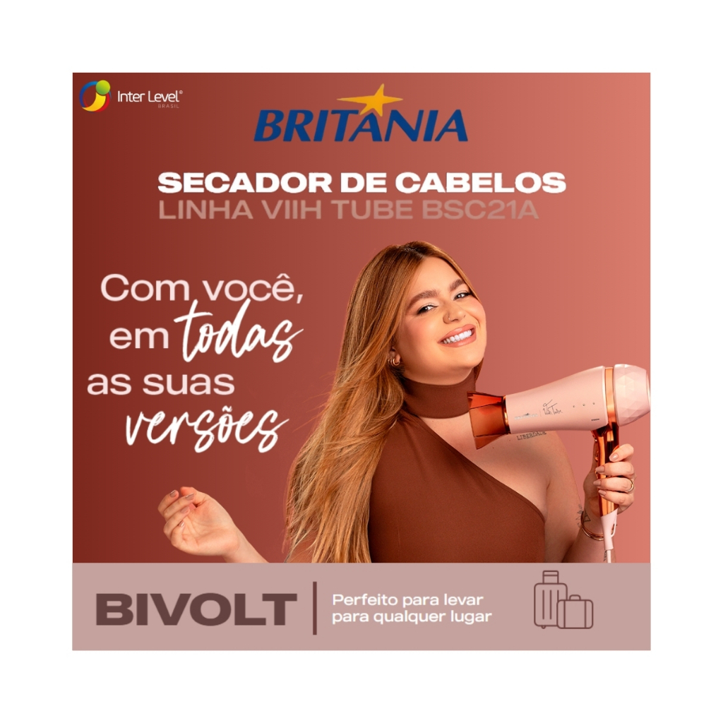 | Secador de Cabelos Linha Viih Tube Bivolt 2100W BSC21A Britânia este produto | R$ 189,90 | 22% | 4.9/5 | 30 |