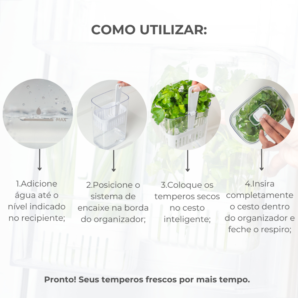 Mantenha geladeira e mesa sempre organizadas com a linha Clear Fresh. O design clean e transparente facilita ver o que tem dentro, valoriza a apresentação e otimiza o espaço — inclusive na porta da geladeira. Ideal para saladas, folhas, frutas, temperos e mise en place do dia a dia. Destaques Armazenamento inteligente que ajuda a preservar frescor e durabilidade dos alimentos. Transparência e sofisticação: visualize o conteúdo sem abrir. Praticidade no uso diário: vai à geladeira e é perfeito para servir saladas à mesa. Dois tamanhos para diferentes rotinas: 2,3 L para temperos/porções menores e 5,5 L para saladas e volumes maiores. Opções de capacidade e medidas 2,3 L – Dimensões aprox.: Altura 23,5 cm x Largura 13,5 cm x Comprimento 19,5 cm | Peso: 0,30 kg 5,5 L – Dimensões aprox.: Altura 15 cm x Largura 24,5 cm x Comprimento 24,5 cm | Peso: 0,67 kg Materiais PS (Poliestireno) + PP (Polipropileno) Linha: Clear Fresh Instruções de uso Pode ir à geladeira. Não levar ao micro-ondas, freezer ou lava-louças. Sirva saladas à mesa diretamente no recipiente. Organize temperos, hortifruti, frios e snacks com praticidade.