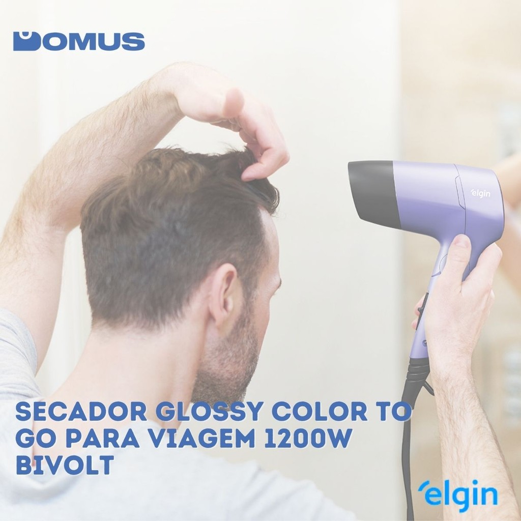 PRODUTO PRONTA ENTREGA COM ENVIO IMEDIATO Secador de Cabelo Elgin Glossy Color To Go 1200W Bivolt com Tourmaline Íon | Dobrável e Leve para Viagens Ideal para quem está sempre em movimento, o Secador Glossy Color To Go da Elgin combina potência, leveza e portabilidade em um design compacto e dobrável. Com 1200W de potência e tecnologia Tourmaline Íon, proporciona uma secagem eficiente e cabelos mais macios, brilhantes e sem frizz. Bivolt e superleve, ele pode ser usado em qualquer lugar, seja no dia a dia ou em viagens. O bocal concentrador facilita a modelagem e o anel para pendurar garante praticidade no uso e armazenamento. Com duas velocidades e temperaturas, você ajusta o desempenho conforme sua necessidade, com conforto e flexibilidade. Diferenciais do produto: Compacto, dobrável e leve: ideal para viagens Tourmaline Íon: cabelos com mais brilho, maciez e menos frizz Bivolt com chave seletora: use em qualquer lugar sem preocupações Potência de 1200W: secagem rápida e eficaz 2 velocidades e temperaturas: escolha a ideal para seu tipo de cabelo Bocal concentrador de ar: facilita a modelagem Cabo flexível com alça para pendurar Baixo nível de ruído e fácil de manusear Especificações técnicas: Potência: 1200W Tensão: Bivolt (127V ou 220V – chaveado) Frequência: 60Hz Consumo: 1,2 kWh (127V) / 1,0 kWh (220V) Dimensões: 23 cm (altura) x 14 cm (largura) x 7 cm (profundidade) Peso: 0,38 kg Conteúdo da embalagem: 1 Secador de cabelos Glossy Color To Go; 1 Bocal concentrador de ar; 1 Manual do usuário Leve, moderno e eficiente — o Glossy Color To Go da Elgin é o secador perfeito para quem busca praticidade e ótimo desempenho onde estiver!