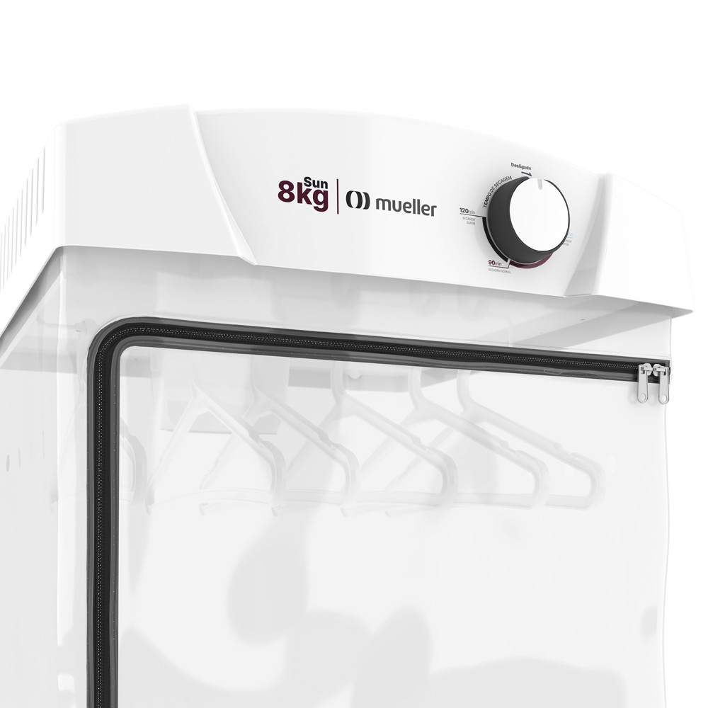 SECADORA DE ROUPA MUELLER SUN 8KG – 220V – BRANCA A secadora de roupa Mueller Sun 8kg oferece praticidade e eficiência para o cuidado diário das suas roupas. Com design compacto e moderno, é ideal para espaços reduzidos e para quem busca agilidade na rotina, garantindo secagem rápida, segura e uniforme sem danificar os tecidos. CARACTERÍSTICAS PRINCIPAIS - Capacidade para até 8 kg de roupas, ideal para famílias pequenas e médias. - Funcionamento em 220v, proporcionando desempenho eficiente na secagem. - Timer com ar quente, permitindo controlar o tempo de secagem com precisão e segurança. - Acompanha 6 cabides, perfeitos para secar camisas, roupas delicadas e peças finas sem amassar. - Design compacto e moderno, que se adapta facilmente a diferentes ambientes. ESPECIFICAÇÕES TÉCNICAS - Cor: Branca - Sistema de secagem: Ar quente - Capacidade: 8 kg - Voltagem: 220 v DIMENSÕES DO PRODUTO SEM EMBALAGEM - Largura: 59,0 cm - Altura: 59,0 cm - Profundidade: 70,0 cm DIMENSÕES DO PRODUTO COM EMBALAGEM - Largura: 50,0 cm - Altura: 20,0 cm - Profundidade: 58,0 cm BENEFÍCIOS - Proporciona secagem rápida e eficiente, economizando tempo no dia a dia. - É fácil de usar, com funcionamento simples e intuitivo. - Oferece a qualidade Mueller, marca reconhecida pela durabilidade e confiabilidade de seus produtos. A secadora de roupa Mueller Sun 8kg é a escolha ideal para quem busca facilidade, economia e eficiência na secagem das roupas, com excelente aproveitamento de espaço e ótimo desempenho no uso diário.