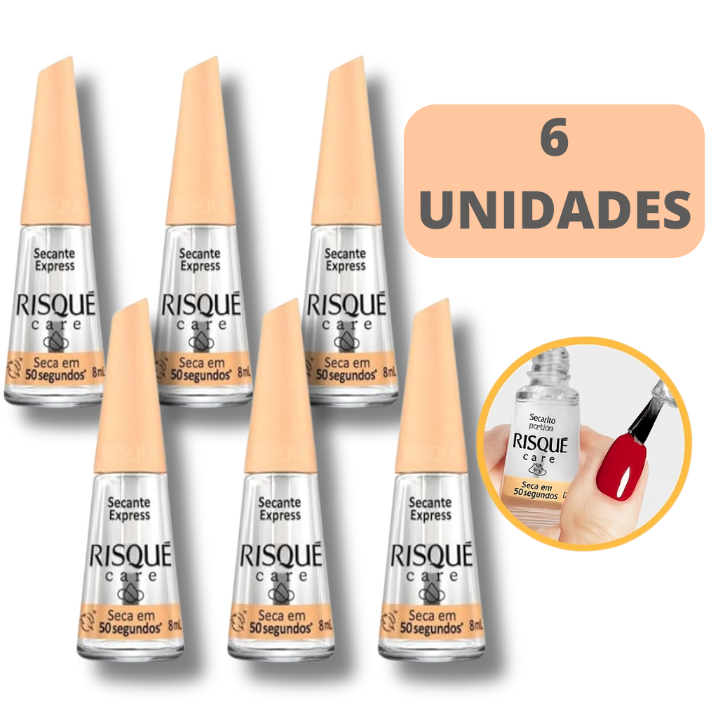 Oferecimento Itufarma, a mais de 10 anos no mercado. Atenção: Antes de realizar sua compra atente-se na opção selecionada. KIT COM 3 UNIDADES KIT COM 6 UNIDADES O Secante Express da linha Risqué Care ajuda o esmalte a secar mais rápido. Em 50 segundos, previne contra poeiras, arranhões e borrões superficiais. Sensorial líquido com textura não oleosa. Risqué Care é uma linha de cuidados completa do início ao fim