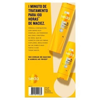 🚚 Envio Imediato | ✨ Produto 100% Original 💖🧴 Kit Seda Toque de Seda Amino-Silk Complex – Shampoo 300ml + Condicionador 190ml + Máscara de Tratamento 300g Diga adeus aos cabelos secos e ásperos com o Kit Seda Toque de Seda! Com tecnologia avançada e fórmula enriquecida com Aminoácidos Essenciais e Proteína da Seda, esse trio poderoso transforma seus fios desde a primeira aplicação, proporcionando hidratação profunda, brilho intenso e uma maciez prolongada de até 100 horas. 💡 Benefícios que você vai amar: ✔️ Maciez imediata e duradoura ✔️ Hidratação intensa e reposição da umidade natural ✔️ Reparação profunda e fortalecimento da fibra capilar ✔️ Brilho radiante e toque sedoso ✔️ Redução do frizz e facilidade no desembaraço ✔️ Tratamento intensivo com a máscara para fios extremamente ressecados 🧼 Modo de uso: Shampoo (300ml): Aplique nos cabelos molhados, massageie o couro cabeludo suavemente e enxágue. Repita se necessário. Condicionador (190ml): Com os fios limpos e úmidos, aplique no comprimento e pontas. Espalhe bem, deixe agir por alguns minutos e enxágue totalmente. Máscara de Tratamento (300g): Use 1 a 2 vezes por semana. Aplique nos cabelos úmidos após o shampoo, enluve mecha a mecha, deixe agir por até 3 minutos e enxágue bem. 📦 Conteúdo da embalagem: 🧴 01 Shampoo Seda Toque de Seda 300ml 🧴 01 Condicionador Seda Toque de Seda 190ml 🧴 01 Máscara de Tratamento Seda Toque de Seda 300g ⚠️ A embalagem pode variar conforme o lote enviado pelo fabricante. ✨ Na Realce Supremo, você recebe produtos 100% originais, com envio rápido, cuidado no preparo e total segurança na entrega. 🌟 Realce Supremo – Cabelos macios, brilhantes e com toque de seda como você merece! 💗✨