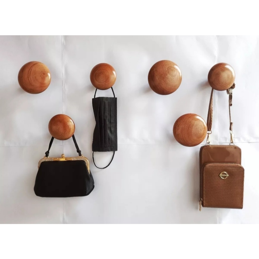 Seis Ganchos em Madeira para Parede - Suportes para Espelhos Adnet - Seis Cabides Redondos