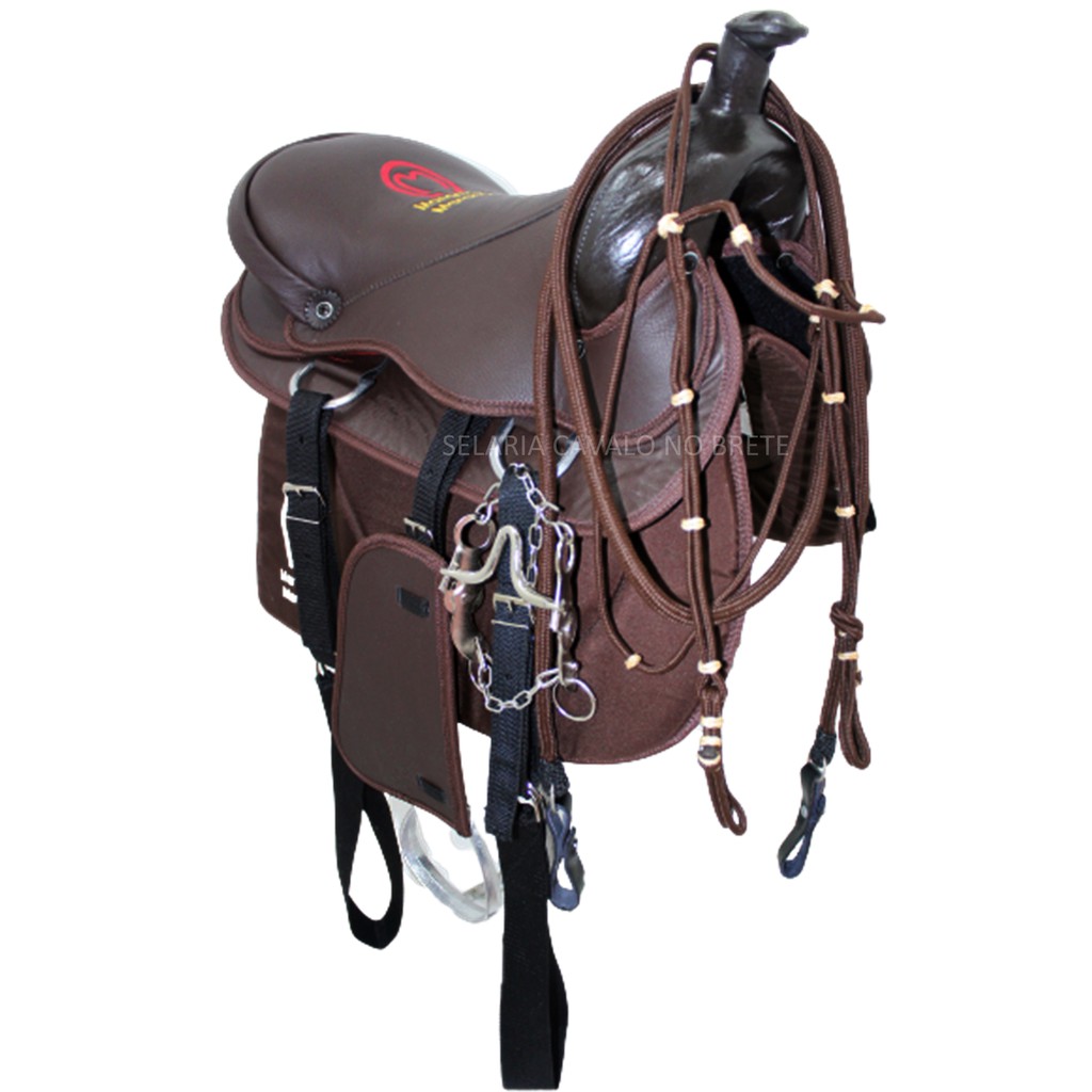Sela Americana Adulto 15 Polegadas Pronta Para Uso Acessorios Manta Redea Cabeçada E Freio