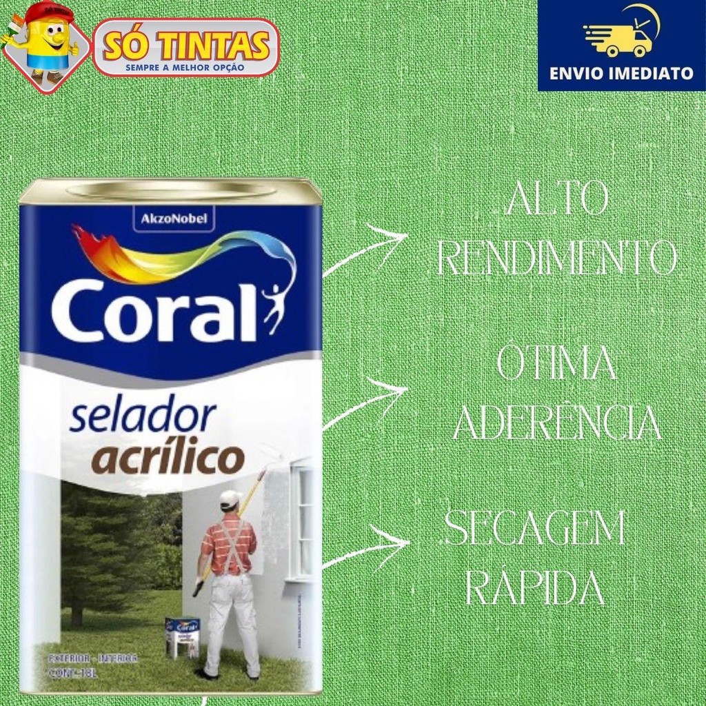 Imagine paredes perfeitamente seladas e uniformes, prontas para receber uma pintura impecável. Com o Selador Acrílico Coral, você alcança esse resultado com facilidade. Sinta a satisfação de uma aplicação simples e rápida, que garante uma base ideal para suas cores favoritas, elevando o visual de qualquer ambiente. Benefícios do Selador Acrílico Coral: •Rendimento Extraordinário: Cobre até 100 m², otimizando seu investimento. •Secagem Rápida: Com secagem ao toque em apenas 30 minutos e secagem final em 5 horas, você ganha tempo e pode avançar rapidamente no seu projeto. •Fácil Aplicação: Use rolo, pincel ou pistola para uma aplicação uniforme, adaptando-se às suas necessidades. •Alto Poder Selante: Garantindo que sua pintura tenha uma base firme e resistente, evitando surpresas desagradáveis. •Alta Aderência: Proporciona uma fixação excepcional, minimizando o risco de descascamento da tinta. •Ideal para Novas Paredes: Perfeito para reboco novo e firme ou blocos, tornando seu trabalho mais fácil e eficiente. Dados Técnicos •Marca: Coral •Tipo de Produto: Selador Acrílico •Conteúdo da Embalagem: 18 Litros Características Técnicas: •Rendimento: Aproximadamente 100 m² por embalagem •Uso Indicado: Superfícies de alvenaria (reboco novo e firme ou bloco) •Diluição: 15% com água potável •Quantidade de Demãos: 1 (pode variar conforme a absorção da superfície) •Secagem ao Toque: Aproximadamente 30 minutos •Secagem Final: Cerca de 5 horas •Ferramentas Indicadas para Aplicação: Rolo de lã, pincel, trincha ou pistola •Antimofo: Não •Lavável: Não •Alto Poder Selante: Sim •Alta Aderência: Sim Aplicação Passo a Passo: 1.Preparação da Superfície: oCertifique-se de que a superfície esteja limpa, seca e livre de poeira ou sujeira. Se houver irregularidades, lixe a área para um acabamento mais suave. 2.Diluição do Produto: oDilua o selador em água potável, utilizando 15% de água em relação ao volume total do selador. Misture bem até obter uma solução homogênea. 3.Proteção das Áreas Adjacentes: oSe necessário, use fita adesiva para proteger rodapés, janelas e outros locais que não devem ser pintados. 4.Aplicação: oUtilize um rolo de lã para áreas maiores, e um pincel ou trincha para cantos e detalhes. oAplique uma camada uniforme do selador, começando de cima para baixo. Evite aplicar em excesso para evitar escorrimentos. 5.Tempo de Secagem: oDeixe secar ao toque por cerca de 30 minutos. Após esse período, verifique a secagem completa (cerca de 5 horas) antes de aplicar a próxima camada, se necessário. Principais perguntas: Acompanha nota fiscal? Sim, todos os nossos produtos são enviados com nota fiscal. O envio é por Correios? Pode ser enviado por Correios ou por transportadora privada, isso vai depender da disponibilidade das transportadoras que atendem o seu endereço. Porque não posso comprar mais de 1 unidade no mesmo pedido? Infelizmente há uma limitação por parte das transportadoras. Elas enviam apenas 1 unidade em cada pedido devido às dimensões e peso do pacote. Para mais unidades, você vai precisar fazer mais de um pedido, respeitando o limite máximo de 1 por pedido. Só Tintas, sempre a melhor opção. Somos a maior rede de lojas de tintas no estado do Rio de Janeiro. Desde 1977, a Só Tintas atua no Rio de Janeiro oferecendo os melhores produtos e soluções em pintura imobiliária, automotiva e industrial. Somos uma empresa familiar que começou em Teresópolis e hoje temos mais de 30 lojas físicas. Trabalhamos de forma ética e transparente, com o principal objetivo de proporcionar aos nossos clientes um atendimento de excelência, provendo as melhores soluções. Nossa missão é levar cor para a vida das pessoas. Por isso a Só Tintas é Sempre a Melhor Opção