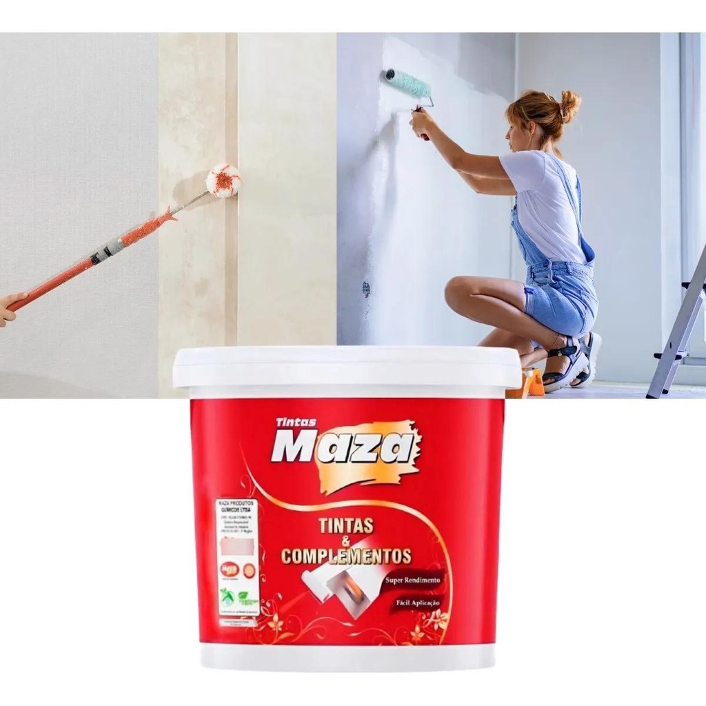 um fundo branco fosco indicado para paredes novas uniformizando a superfície devido ao seu alto poder selante e ótima aderência. Com boa cobertura, ele economiza na aplicação da tinta de acabamento podendo ser aplicado em ambientes externos e internos. Principais características • Exterior e Interior • Aumenta o Rendimento da Tinta • Indicado para primeira pintura Embalagem e rendimento • Lata 900ml até 5,5m² (por demão); Secagem Ao toque 2 Horas Final 6 Horas Diluição • 10% com água potável. • Ferramentas para Aplicação: Rolo de lã de pelo baixo, Pincel ou Pistola (pressão de 30 a 40 lb/pol2). • Preparação da Superfície: Qualquer superfície a ser pintada deve estar limpa, seca, lixada, sem poeira, livre de gordura ou graxa, ferrugem, resto de pintura velha, brilho e etc. Antes de iniciar a pintura, observe todas as orientações abaixo: SELADOR BASE DE ÁGUA PARA PAREDES 900ML MAZA