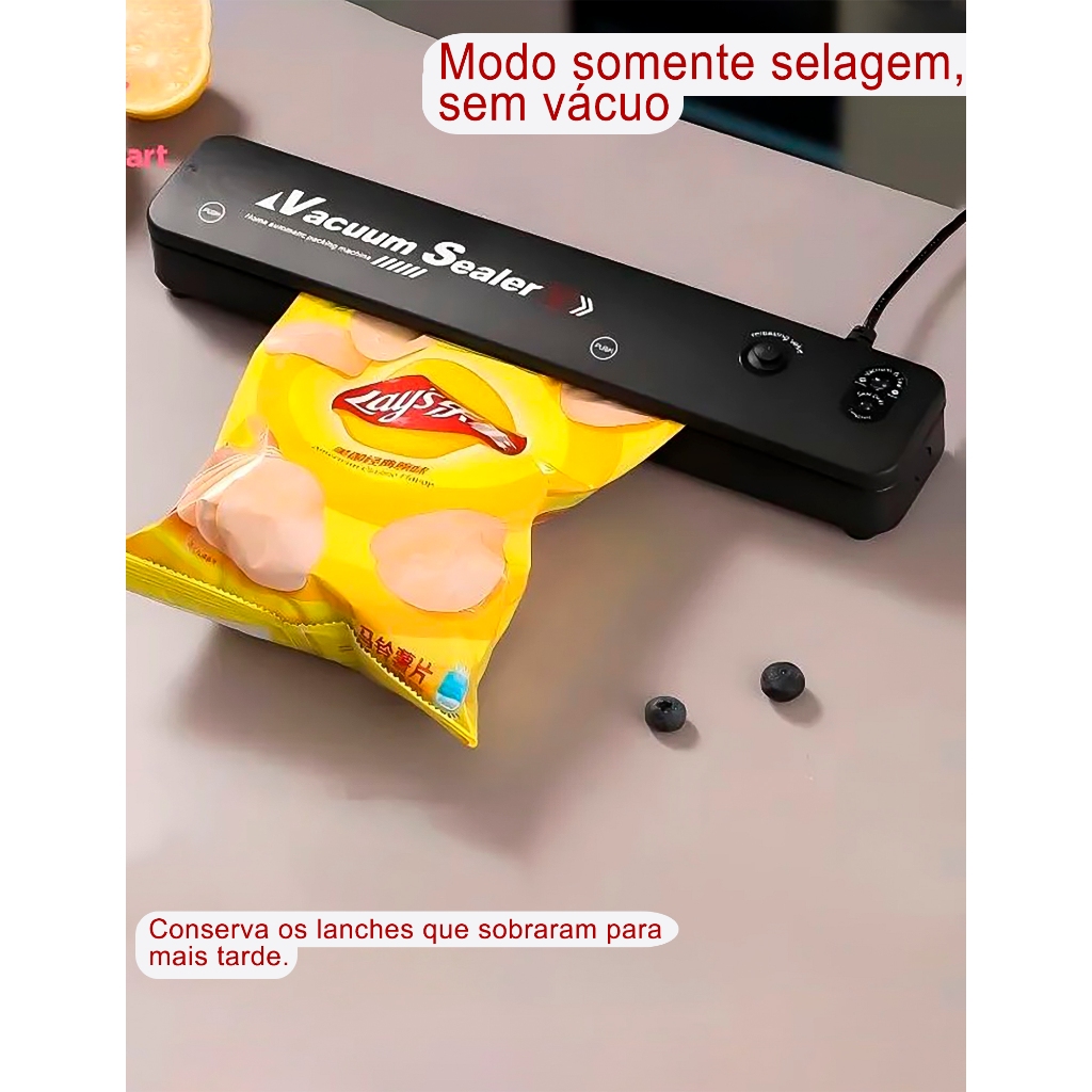 Seladora Embalagem A Vácuo Portátil Alimentos Bivolt Elétrica Embala Conservação + 10 Sacos