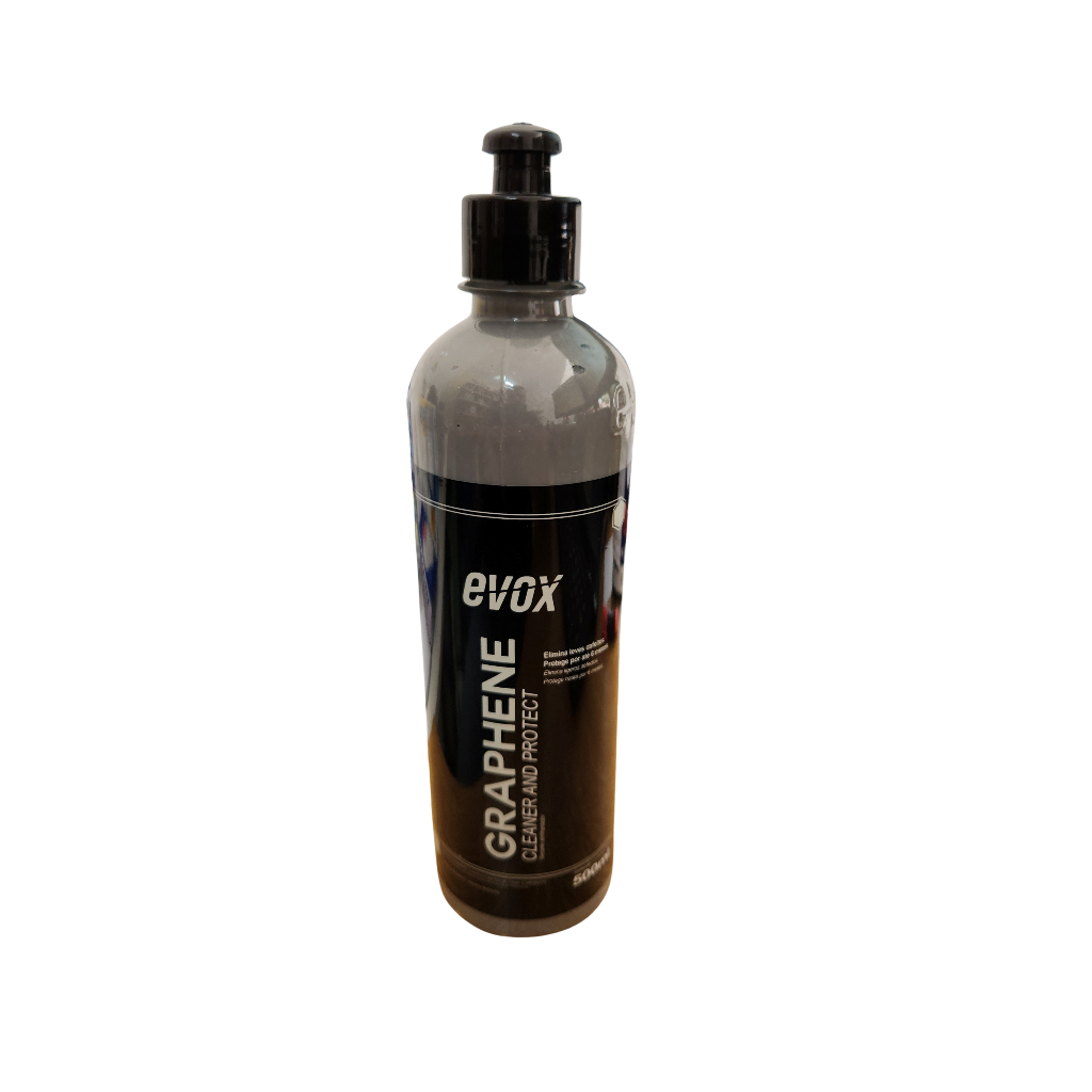 GRAPHENE CLEANER AND PROTECT Selante à base de grafeno GRAPHENE CLEANER AND PROTECT é um selante à base de grafeno com dupla função. Por conter abrasivos suaves em sua composição, o produto limpa a pintura e promove proteção à base de grafeno com durabilidade de até 6 meses. MODO DE USAR: 1. Certifique-se que a pintura esteja limpa e descontaminada. 2. Coloque algumas gotas do produto em um aplicador de espuma ou de microfibra. 3. Aplique o produto na pintura fazendo movimentos uniformes e circulares . 4. Continue repetindo esse processo até concluir o carro inteiro e aguarde alguns minutos antes de remover. 5. Após aplicação em todo o veículo, faça a remoção completa utilizando uma microfibra até obter o brilho desejado.