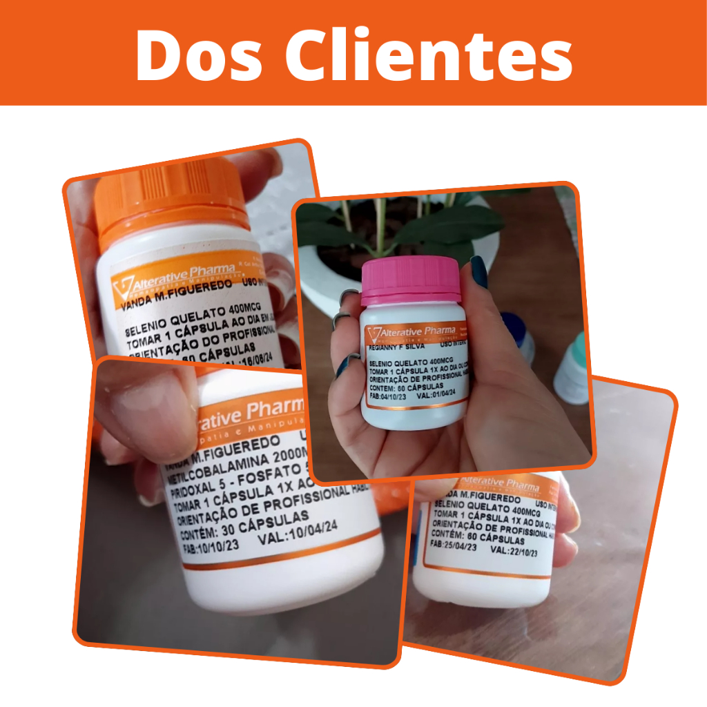 COMPOSIÇÃO: Selênio 400mcg Excipiente qsp 1 cápsula SUGESTÃO DE USO: Tomar 1 cápsula ao dia ou conforme orientação do profissional habilitado. VALIDADE: 06 meses a partir da data de manipulação. Sobre a Empresa Há mais de 30 anos, a Alterative Pharma consolidou-se como sua escolha confiável em farmácia de manipulação, oferecendo soluções personalizadas para suas necessidades de saúde e bem-estar. Nossa equipe de especialistas em manipulação farmacêutica garante a qualidade e eficácia dos suplementos, empregando os melhores ingredientes e tecnologia de ponta. Estamos comprometidos em fornecer cuidados de saúde personalizados e seguros. Confie em nós para cuidar da sua saúde de forma individualizada e confiável. CNPJ: 60.707.635/000155 Farmacêutica Responsável: Carolina V. B. Reschini CRF-SP: 38.309