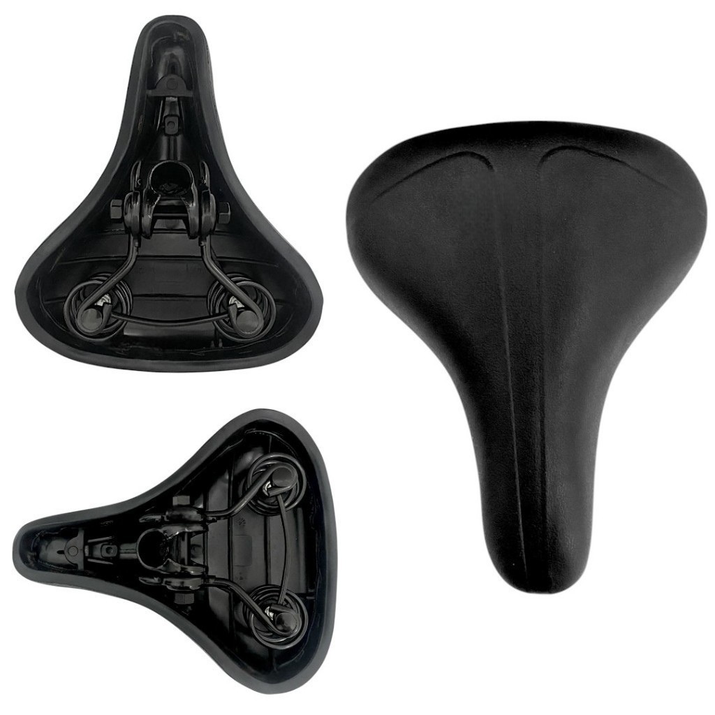 Item inclusos no kit: 01 Cesta aramada aro 20, 24 e 26 01 Banco largo 2 molas preto ------------------------------- Selim ( Banco ) linha conforto 2 molas Cor: Preto/Cinza Linha conforto. 2 molas. Acabamento costurado maior resistência. Espuma macia, com largura de 22cm. Parte traseira elevada, proporcionando maior conforto. ------------------------------- Marca: Isapa Imports Modelo: Aramada Material: Aço com pintura plástica revestida Dimensões: Comprimento 31cm x Altura 22cm x Largura 23cm Peso aproximado: 630 gramas (vazia) Capacidade máxima: 5 Kg aproximadamente Cor: Preta