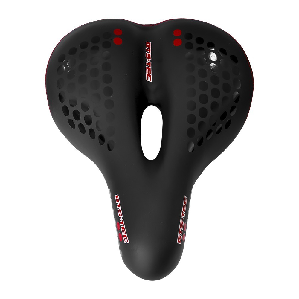 SELIM GTS-TEC SUPER CONFORT COM LED TRASEIRO O Selim GTS-TEC Confort com led é uma excelente escolha para sua bike, ele é feito com couro sintético, é um modelo super macio e confortável para sua pedalada. Possui um furo vazado no meio do selim para ventilação e melhor absorção de impactos. Possui 5 Leds vermelhos traseiro embutido para sinalização noturna. Alimentação com bateria tipo botão CR2032 (Não acompanha baterias). Espuma de alto conforto. Possui 2 amortecedores de elastômero. Acompanha carrinho. Peso: Aprox 950g. Medidas: Aprox 20 cm largura, 27 cm comprimento, 10 cm altura da espuma. Cor: Preto com detalhes conforme a escolha. Modelo: Super Confort.