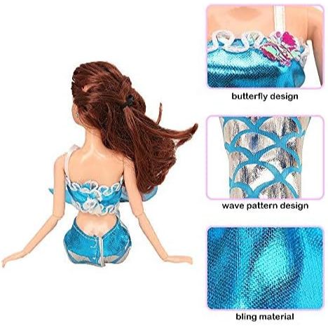 [Sem Boneca] 5 Peças Menina Cauda De Sereia Roupas E Acessórios Para Bonecas Vestido De Verão Maiô Biquíni De 11.5 Polegadas