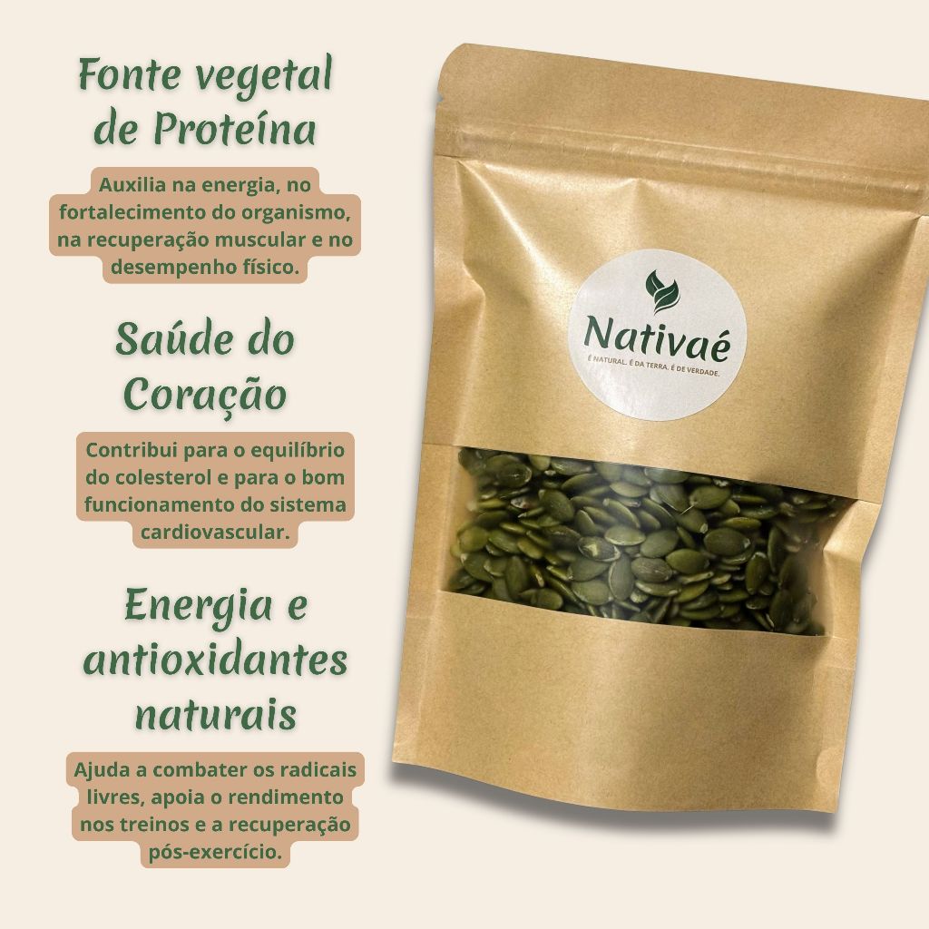 IMAGENS REAIS DOS PRODUTOS E EMBALAGENS (STAND-UP POUCH COM ZIP LOCK). TRABALHAMOS APENAS COM ALIMENTOS NATURAIS PREMIUM DE ALTÍSSIMA QUALIDADE, COM GARANTIA DE PROCEDÊNCIA E LAUDOS DISPONÍVEIS MEDIANTE SOLICITAÇÃO. APÓS RIGOROSA ANÁLISE DE QUALIDADE, OS ALIMENTOS SÃO EMBALADOS EM PROCESSOS AUTOMATIZADOS POR MODERNOS EQUIPAMENTOS SEGUINDO OS MAIS RIGOROSOS PADRÕES SANITÁRIOS E DE HIGIENE DA ANVISA. NÃO COMPRE ALIMENTOS ONLINE DE LOJAS QUE NÃO OFEREÇAM ESSAS GARANTIAS. CUIDE DA SUA SAÚDE E DA SUA FAMÍLIA. __________ Sabor suave, perfeita para consumir como snack, adicionar a saladas, bowls, vitaminas, iogurtes, granolas, mix de nuts ou usar em receitas doces e salgadas. Também pode ser usada em pães, massas e finalizações crocantes. Rica em proteínas, gorduras boas, fibras, além de minerais como zinco, magnésio, ferro e potássio. Contém antioxidantes naturais e vitaminas do complexo B. Benefícios: -Apoia a imunidade. -Ajuda na energia e disposição. -Contribui para a saúde muscular. -Ação antioxidante. -Auxilia no bom funcionamento do intestino. Disponíveis em 250 g, 500 g (dois pacotes de 250 g) e 1 kg (quatro pacotes de 250 g).