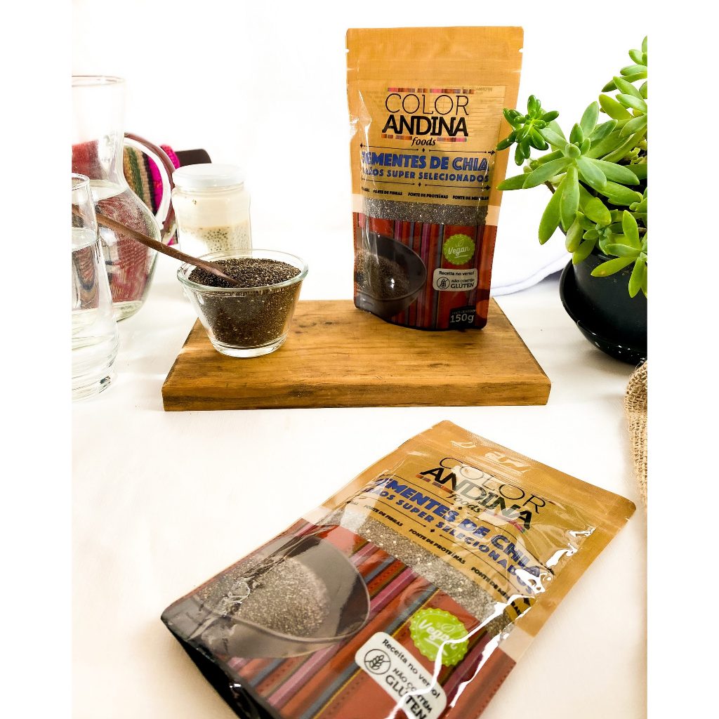 Validade: 22/07/2026. O que é a SEMENTE DE CHIA? Nos últimos anos, a chia se tornou um alimento essencial para aqueles que adotam um estilo de vida mais saudável. A sementinha, porém, é conhecida desde os tempos dos Astecas (povos ancestrais), que a usavam para fins medicinais e até em cerimônias religiosas. Ela é originária do sul do México e seu nome significa força. Benefícios da SEMENTE DE CHIA A chia é fonte de ômega 3, rica em fibras, vitaminas, minerais. Fonte de proteínas e antioxidantes, ácido clorogênico, ácido cafeico, quercetina e kaempferol. A Chia pode ser usada no combate a doenças crônicas não transmissíveis, como diabetes mellitus e doenças cardiovasculares. No controle do diabetes mellitus, ela torna mais lenta a absorção do açúcar, controlando a glicemia. Como é rica em ômega 3, auxilia na redução do colesterol total. A Chia também ajuda no bom funcionamento do intestino devido ao conteúdo de fibras. Nesse caso, as sementes devem ser consumidas muito bem hidratadas, para não prejudicarem a função intestinal. Um outro benefício da Chia é que ela dá uma sensação de saciedade, boa para quem quer emagrecer. Quando a semente entra em contato com o estômago, ela expande e libera suas fibras solúveis, que formam uma espécie de gel, o qual retarda o surgimento da fome. A Chia pode ser consumida pura ou misturada em sucos, shakes, vitaminas, iogurtes, frutas, cereais matinais e saladas, bem como adicionada à massa de pães, bolos, tortas e biscoitos. Os especialistas costumam recomendar a ingestão de duas colheres de sopa da semente, diariamente. Semente: você pode incluir o grão em bebidas, sem precisar fazer o gel. Vale ainda usá-lo como acompanhamento de iogurtes naturais, sendo boa opção para lanches da tarde e pré-treino. Como gel: essa é uma forma para usá-la como ingrediente de receitas de sucos, vitaminas, bolos e até molhos. Essa versão pode, inclusive, ser uma ótima substituta de ovos nas receitas, o que é ideal para veganos. Para fazer o gel, basta colocar uma colher de sopa de chia de molho por 30 minutos, em uma vasilha com 60 ml de água. Mas atenção: o gel deve ser ingerido logo em seguida, por isso, nada de guardá-lo para consumir depois. Como Farinha: opção extremamente saudável para substituir a farinha de trigo no preparo de diversas receitas. Para isso, basta bater o grão no liquidificador. Você pode ainda armazenar o restante na geladeira por alguns dias e acrescentar nas frutas, sucos, saladas e mingaus. A COLOR ANDINA FOODS, QUEM SOMOS? COLOR ANDINA, é uma empresa que tem paixão por produtos naturais! Temos um portfólio de produtos de origem Andina, com matéria prima de origem agroecológica e Biodinâmica, de produção ancestral, secos ao sol, com a preservação dos seus nutrientes. Nossos produtos são 100% puros, sem ingredientes de origem animal, sem misturas de ingredientes sintéticos. Produtos 100% de origem vegetal, veganos, formulação o mais simples possível, “Clean Label”, rótulo limpo. Com poucos ingredientes e sem nomes complicados na lista. Nossa missão é ajudar a você e sua família a desfrutarem de uma vida mais saudável com alimentos de verdade!