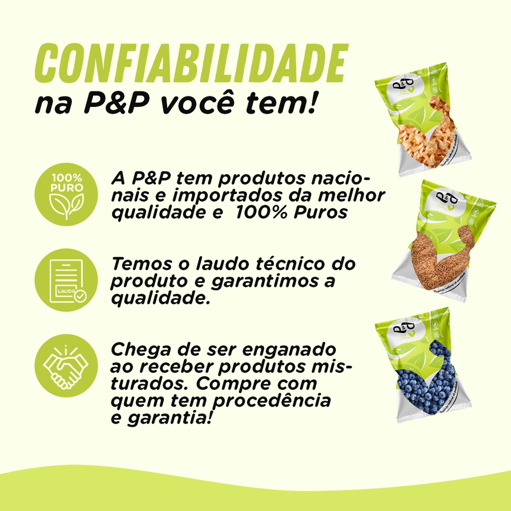 Está cansado de se decepcionar com produtos naturais comprados online? Suas castanhas chegaram murchas? Velhas? O produto entregue não corresponde as fotos do anúncio? Pare de correr riscos desnecessários, aqui na P&P você não precisa se preocupar com nada disso! Alimentação é coisa séria e por isso você deve comprar com uma empresa especializada em venda desse produto pela internet. Nos de um voto de confiança e você irá se surpreender com a qualidade do nosso produto e serviço!! Essa é a semente chia Premium, livre de impurezas! Na P&P Garantimos qualidade e bom preço. Aqui você encontrará tudo que precisa se tratando de produtos naturais! Na P&P quem compra, volta! A PRONTA ENTREGA- ENVIO EM ATÉ 24 HORAS ÚTEIS! A P&P Linha Fit é uma empresa especializada em produtos naturais. Com uma estrutura de ponta para a manipulação de alimentos, fracionamos as sacas e vendemos em embalagens ideias para o nosso consumidor final. A política da Garantia de Satisfação faz com que nossos produtos passem por um rigoroso controle de qualidade levando o melhor produto a mesa do nosso cliente com um preço justo. Descrição do produto: OS PRINCIPAIS BENEFÍCIOS DA SEMENTE DE CHIA INCLUEM: 1- Controlar a diabetes 2- Melhorar a saúde intestinal 3- Ajudar a emagrecer 4- Reduzir o risco de doenças cardiovasculares 5- Evitar o envelhecimento precoce 6- Regular o colesterol 7- Fortalecer os ossos 8- Controla problemas de saúde como: Diabetes, Sobrepeso, depressão, Alzheimer, reumatoides, etc. Dicas de consumo: Pode ser utilizada como acompanhamento de frutas ou no preparo de sucos e vitaminas, esse é um alimento super versátil, que pode fazer parte da sua dieta de diversas formas, sem perder suas propriedades. PERGUNTAS E RESPOSTAS SEMENTE DE CHIA / CHIA SEMENTE Como usar a chia? Usar a semente de chia é muito fácil, você pode utilizar ela na agua, no suco, no iogurte, com granola, na comida, salada dentre tantas outras possibilidades. Quais benefícios da chia para o organismo? Os principais benefícios da chia são as substâncias essenciais para o funcionamento do organismo. É também fonte de minerais, como cálcio, fósforo, ferro, magnésio, manganês, selênio e zinco. Além do ômega 3, um ácido graxo com ação anti-inflamatória que ajuda a prevenir o surgimento de diversas doenças. O uso da chia emagrece? Sim. Comer as sementes uma hora antes do almoço e uma hora antes do jantar, basta acrescentar sobre a comida para obter os benefícios desejados. Não precisa exagerar no consumo. Uma colher de sopa por vez é o suficiente.