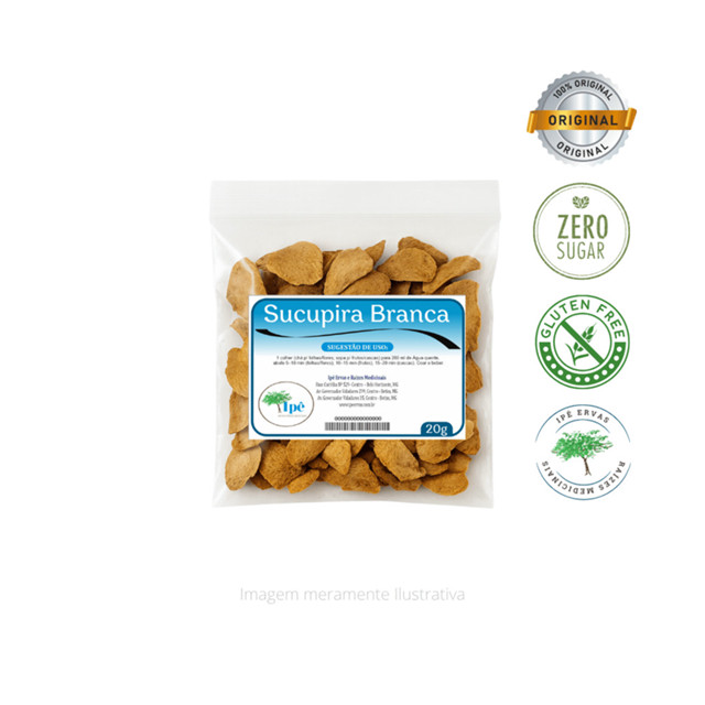 A sucupira é uma grande árvore que possui propriedades medicinais e que por isso pode ser usada para aliviar as dores e inflamações do corpo. Nome Cientifico: Pterodon emarginatus Contém: 20 Gramas de Semente Nomes Populares: Cutiúba, Supupina-do-campo, Sicupira, Sicupira-do-cerrado, Sucupira-açu e Sucupira-parda. Sugestão de Uso: 1. Decocção: Coloque 3 a 4 sementes quebradas junto com 500ml água filtrada no fogo. Deixe ferver por 15 a 20 minutos. Em seguida, desligue o fogo e deixe o recipiente com o chá abafado durante 10 minutos, coe e sirva o chá. Observação: Deve quebrar as sementes antes de utilizar. Deve usar uma panela apenas para esse fim, porque o óleo liberado pelas sementes da planta fica grudado nas laterais da panela, sendo difícil de eliminar completamente. 2. Garrafada: Coloque 30 sementes já quebradas em 750ml de vinho branco seco. Deixe curtir por 7 dias, conserve em local arejado longe do sol e do calor. Tomar 4 colheres de sopa diluído em água 2 vezes ao dia depois das refeições. 3. Bochecho: Utilize o chá feito em decocção e bocheche 3 vezes ao dia. Validade: 24 meses Conteúdo: Semente de Sucupira Branca ANVISA: Produto INSENTO de registro conforme resolução RDC 27 de 06 de agosto de 2010 anexo I. Efeitos Colaterais: Não possui. Contra Indicado: Gravidas, lactantes e crianças com menos de 12 anos. Pessoas com problemas renais ou no fígado devem fazer o uso moderado. *Busque sempre a orientação do seu medico.