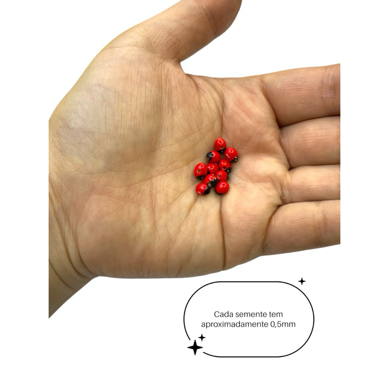 Material: Semente Natural Possui furo passante e por se tratar de semente natural, os tamanhos e formatos são irregulares. Cada semente tem aproximadamente 0,5mm