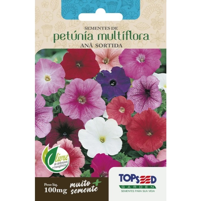 250 Sementes DESTAQUES: Esta é a planta ideal para vasos com terra, canteiros e platibandas PLANTA: Além do impacto produzido pelas suas flores multicoloridas há seu suave perfume e longo período de floração, fazendo da petúnia uma das favoritas; Apesar de ser uma flor de sol, vai bem a meia sombra; Atinge 40 cm ÉPOCA DE PLANTIO: Todo o ano CICLO: Germina entre 7 e 14 dias IRRIGAÇÃO: Irrigar pelo menos uma vez ao dia, preferencialmente no início da manhã ou final da tarde