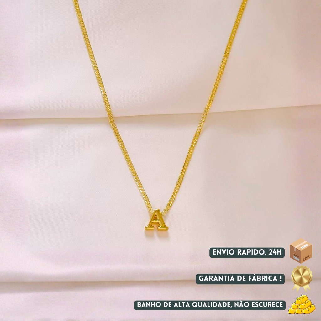 [SEMI JOIA] Colar Choker Grumet Iniciais (1 Letra) Inicial Banho Ouro 18k Acessórios Feminino
