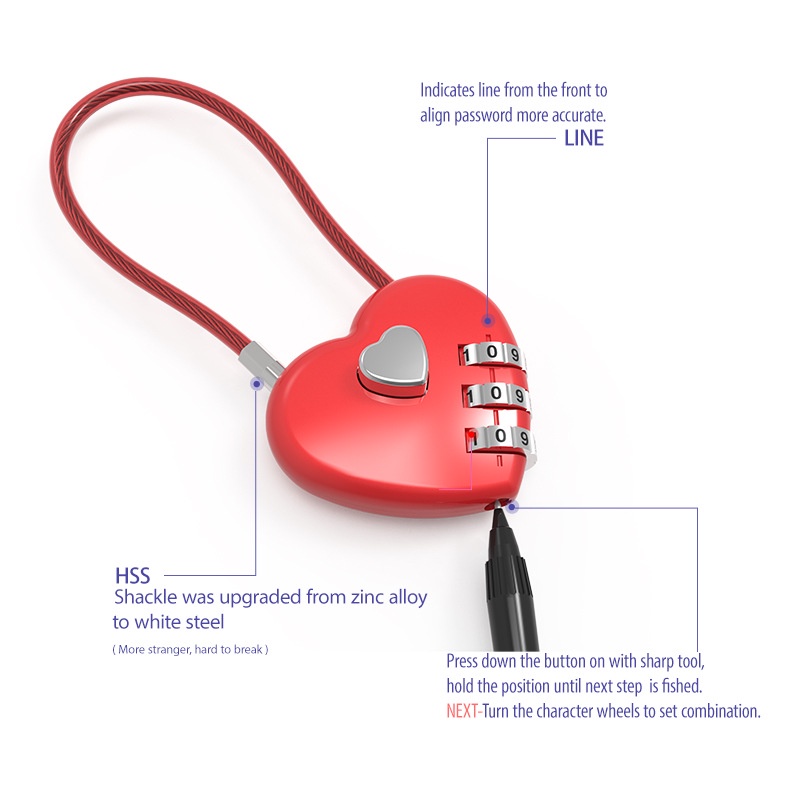 Senha De 3 Dígitos Ferramenta De Segurança Com Fechadura Em Forma De Coração Mala De Viagem Cadeado Acessórios