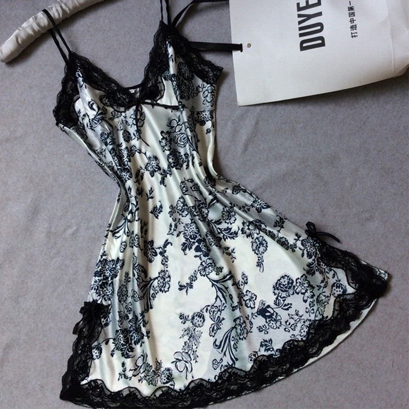 Senhoras Sexy Seda Cetim Pijamas Renda Camisola Moda Vestido De Dormir