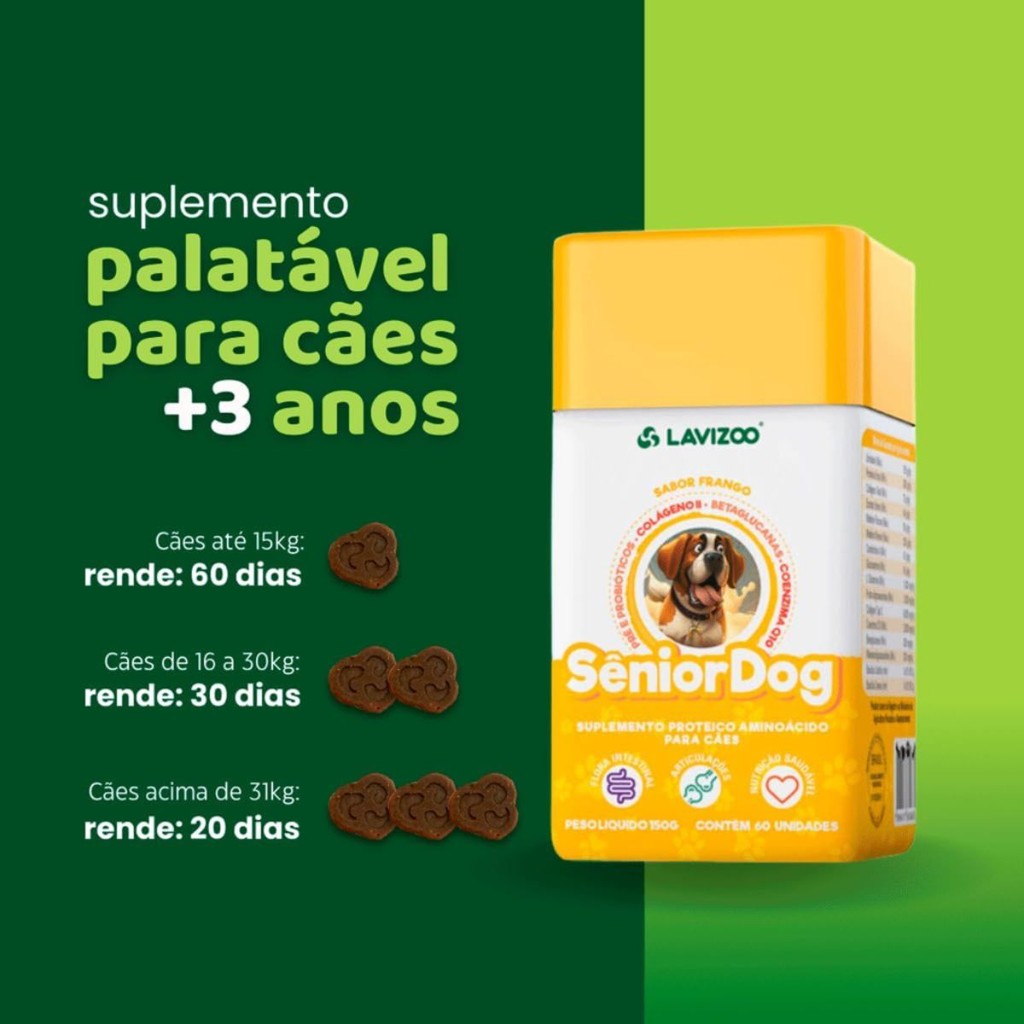 | Senior Dog Gourmet Suplemento P/ Cães Idosos 150Gr - Lavizoo este produto | R$ 83,99 | 36% | 5.0/5 | 9 |