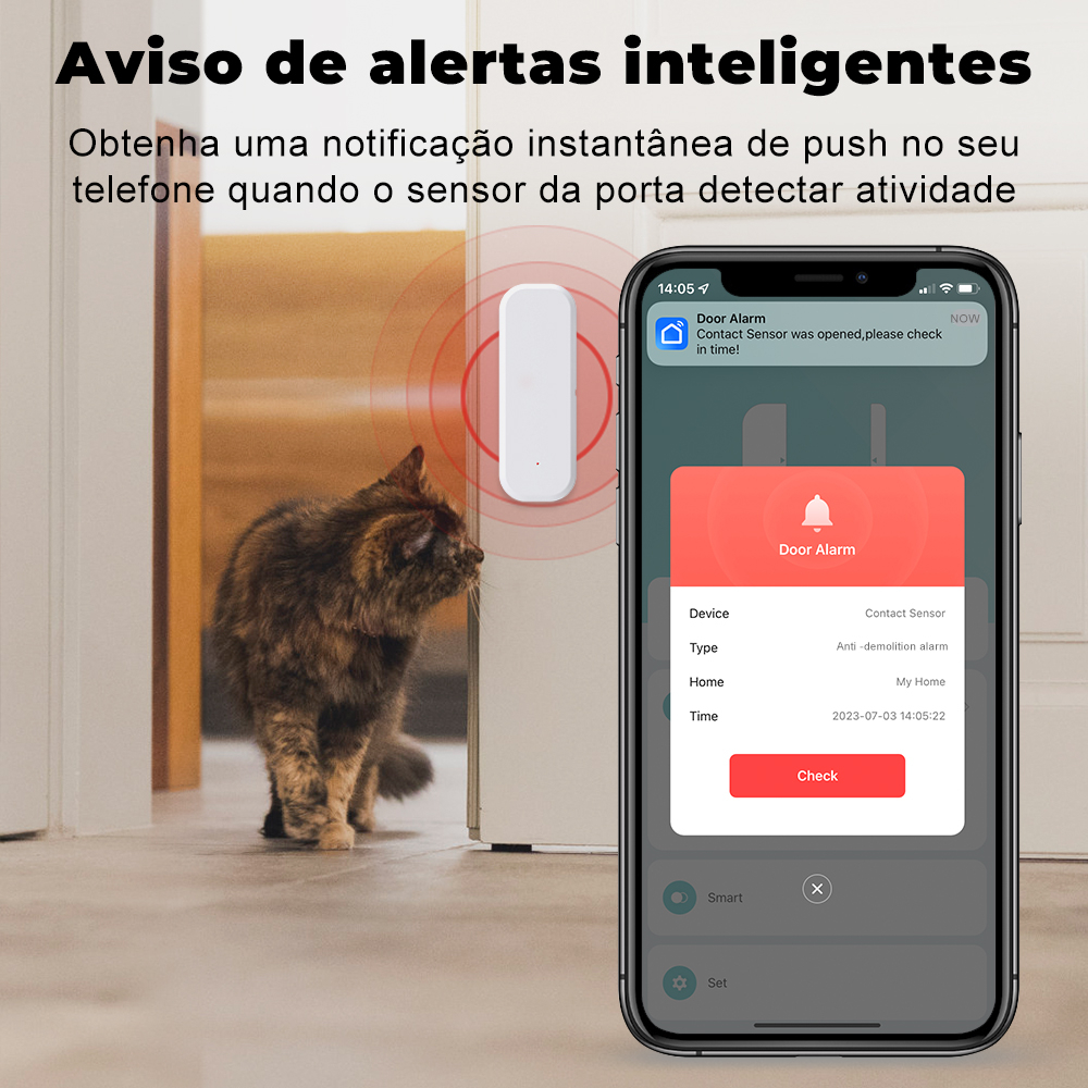 Sensor de Porta e Janela Tuya Alexa WiFi Alimentação por Pilha AAA SmartLife Detector de Aberto/Fechado