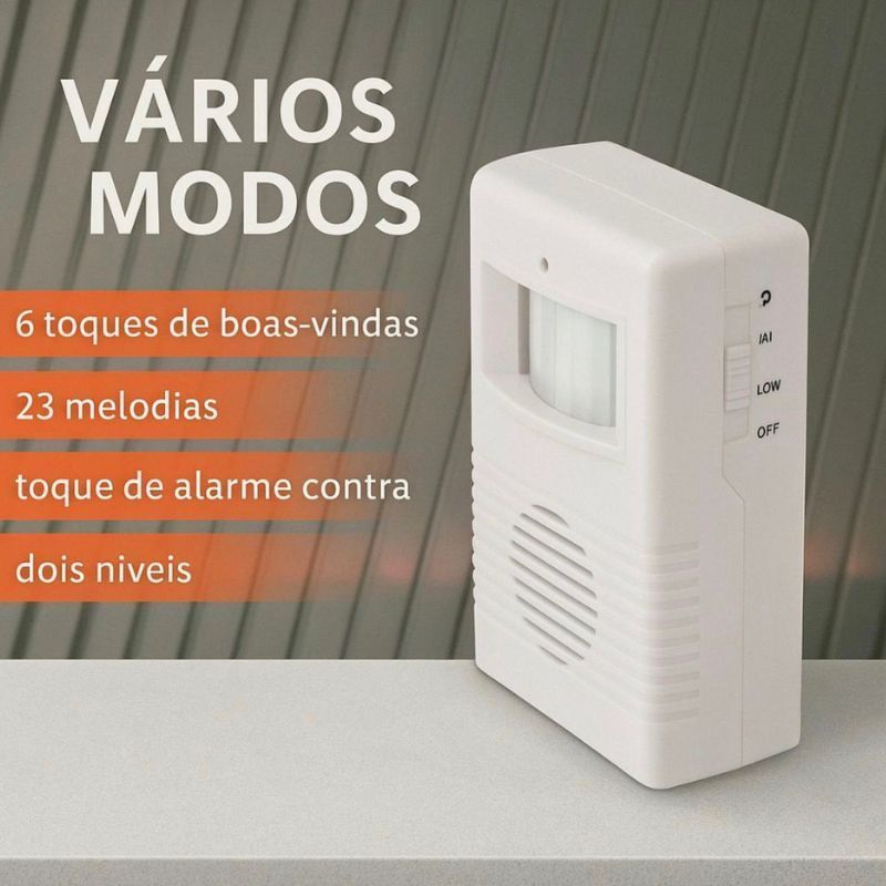 Sensor De Presença Campainha Alarme Detector Movimento Casa