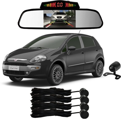 Sensor De Ré + Espelho Camera Ré Fiat Punto Preto